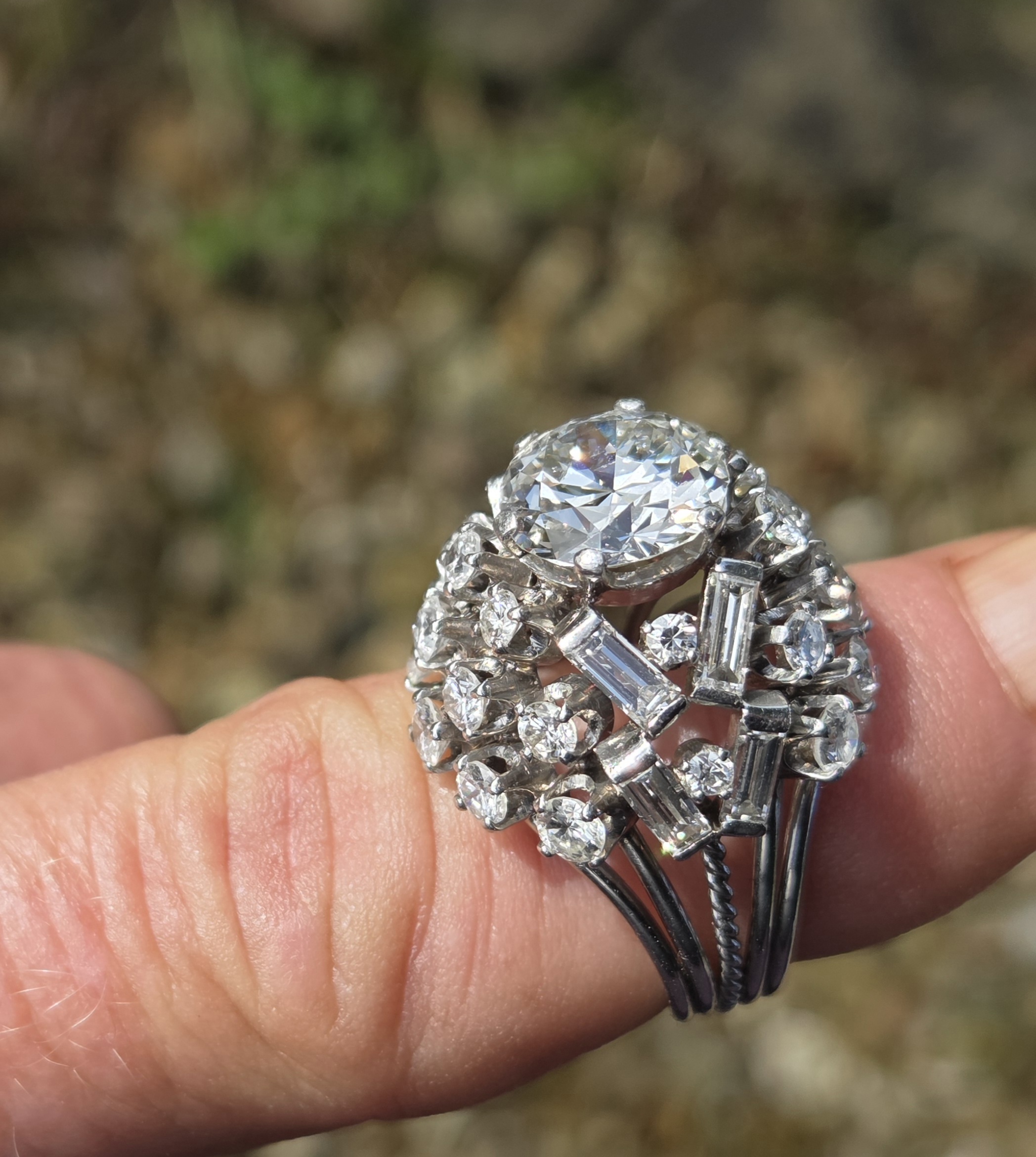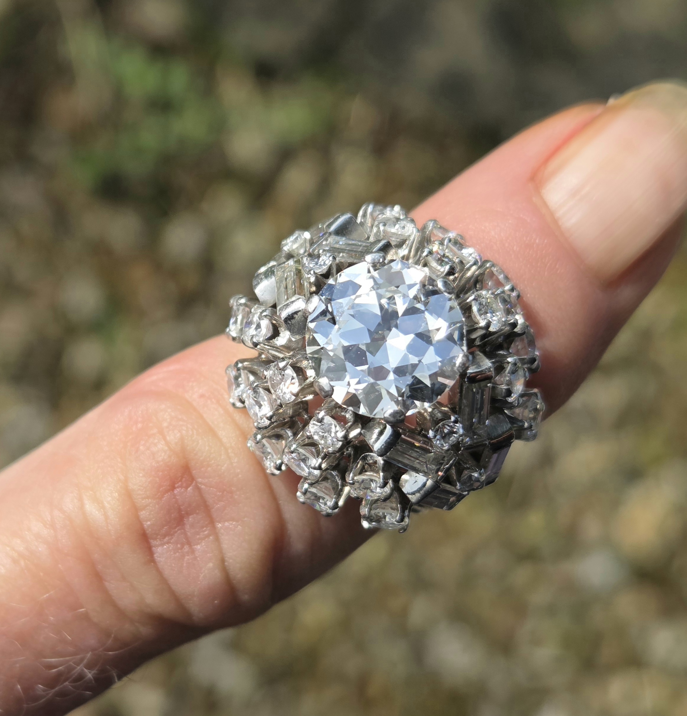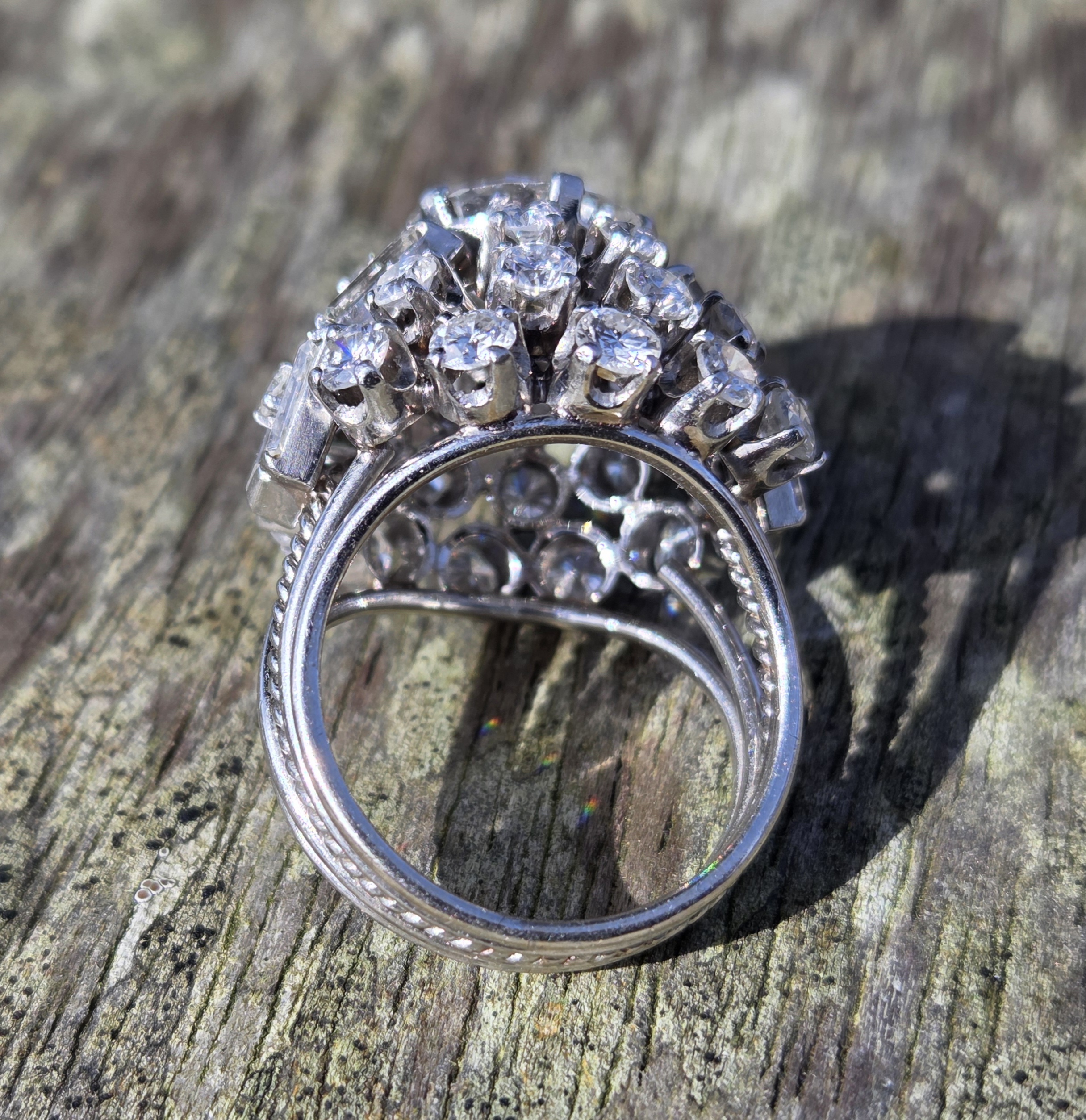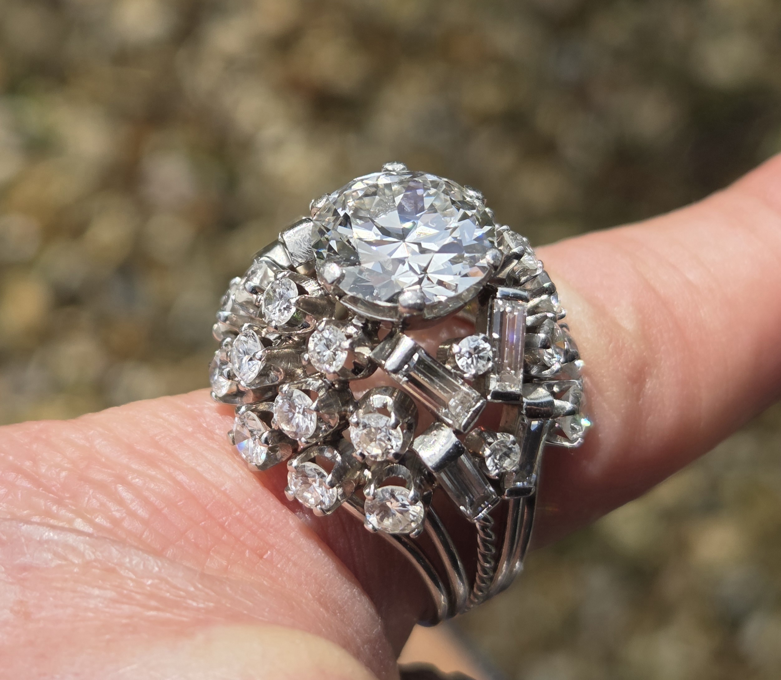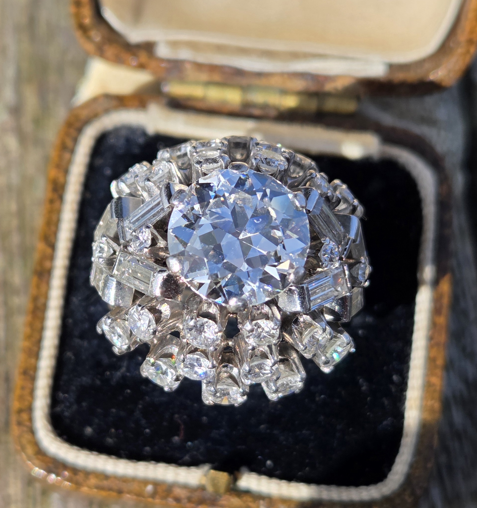 A simply incredible Cocktail Bombe ring. Retro 1950s possibly early 60s with an antique centre diamond. Handmade, bespoke piece. There will never be another the same!