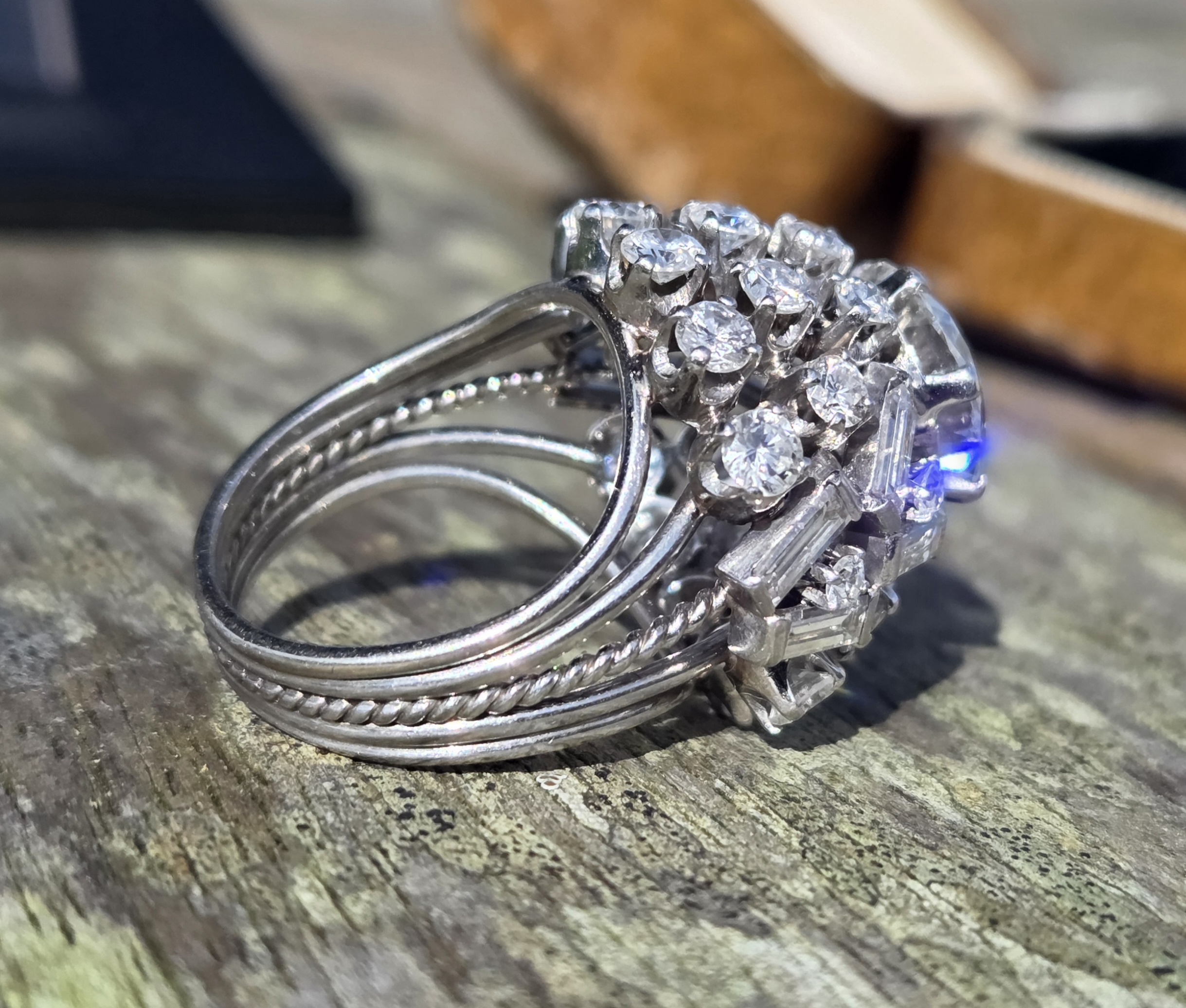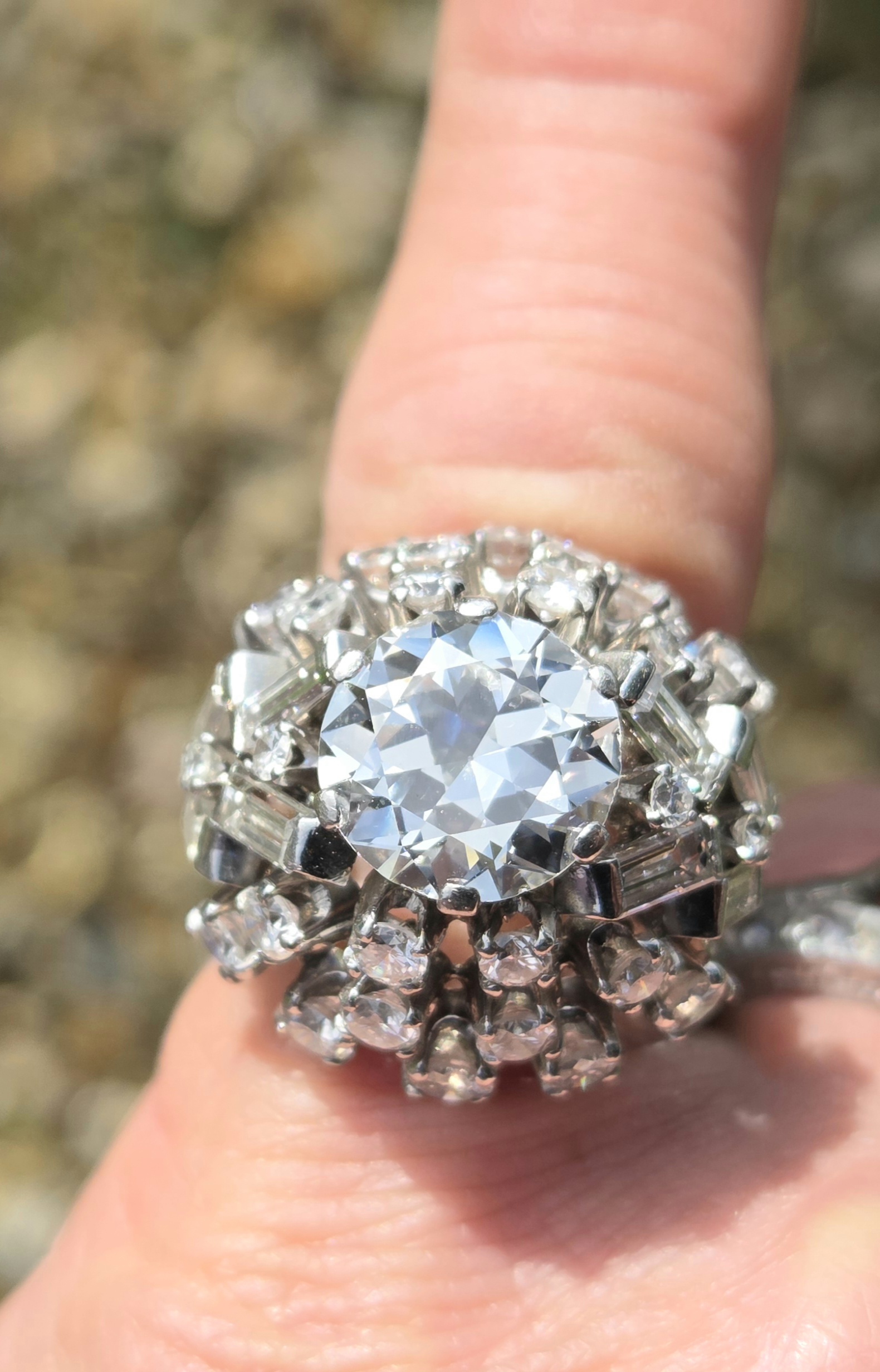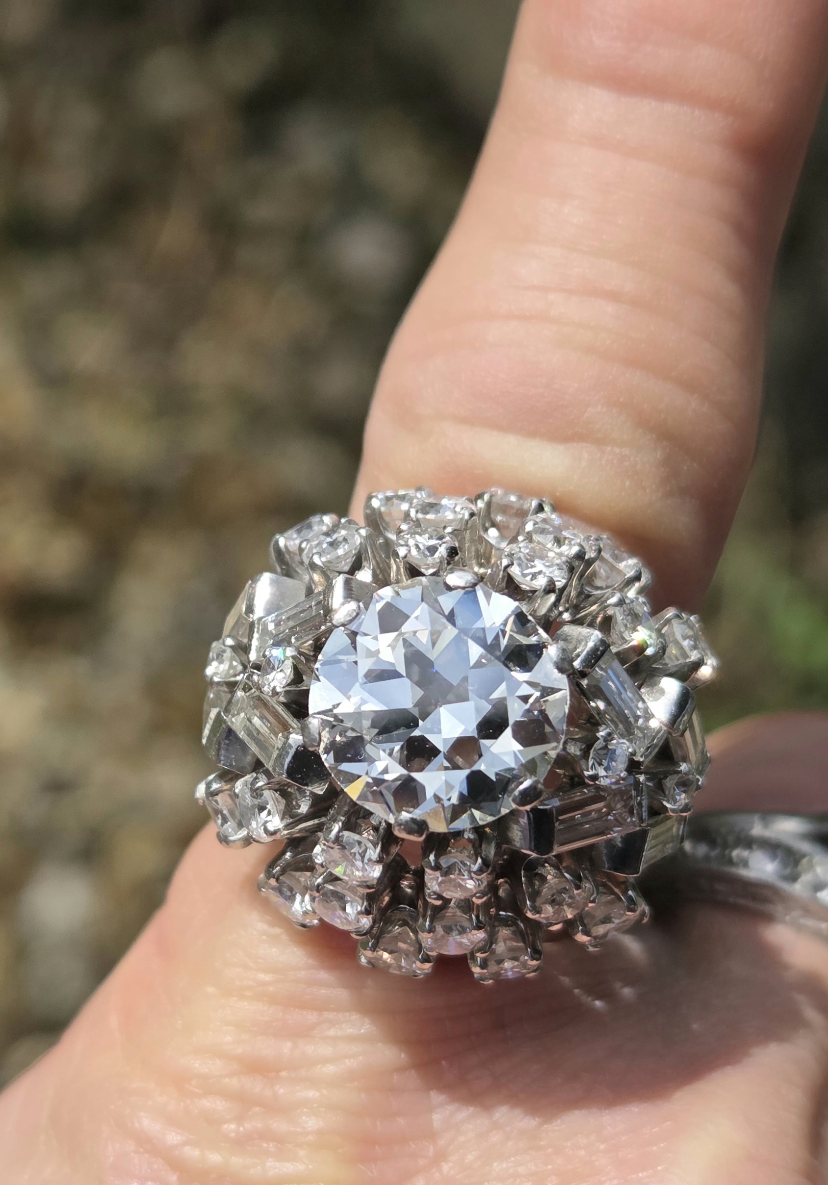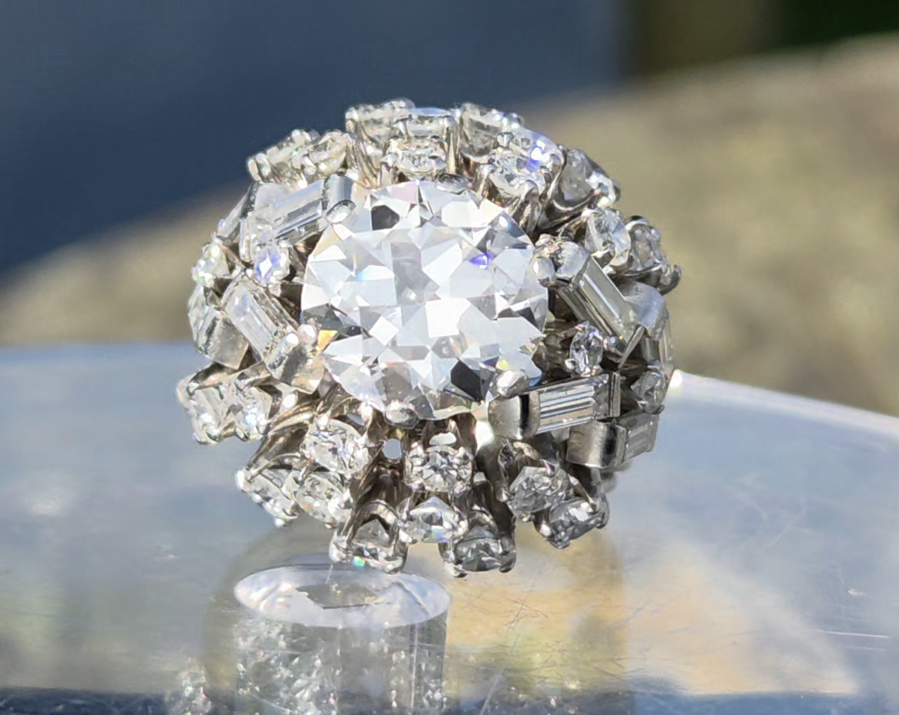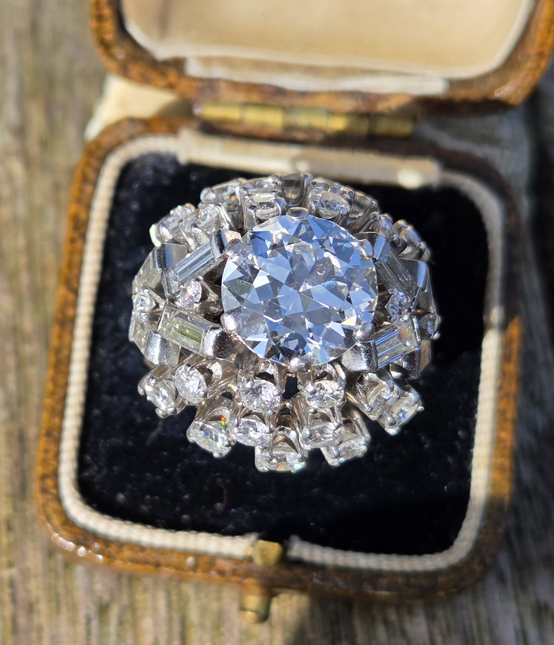 A simply incredible Cocktail Bombe ring. Retro 1950s possibly early 60s with an antique centre diamond. Handmade, bespoke piece. There will never be another the same!