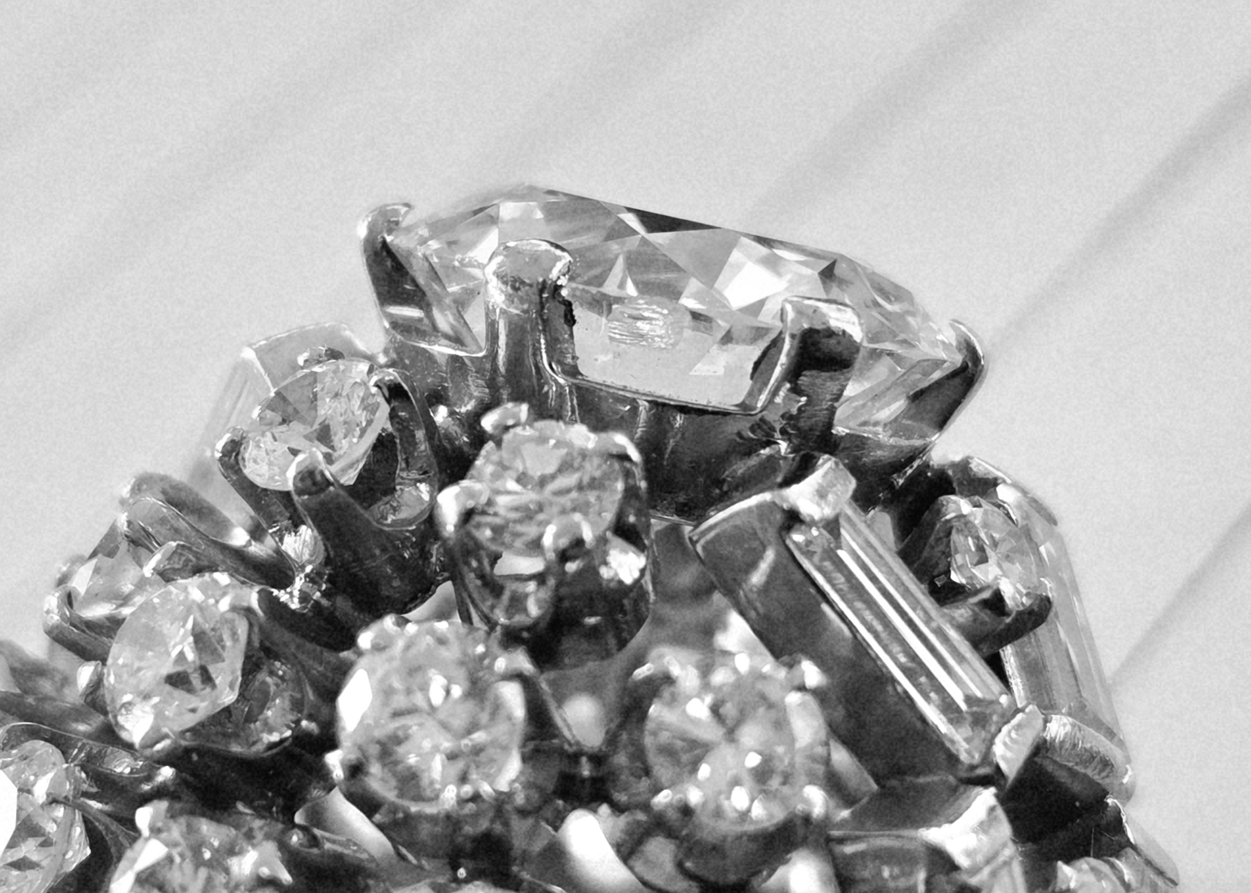 Checkerboard facetting typical of the Early Modern brilliant cut/Transitional cut dating from late 1920s/30s.