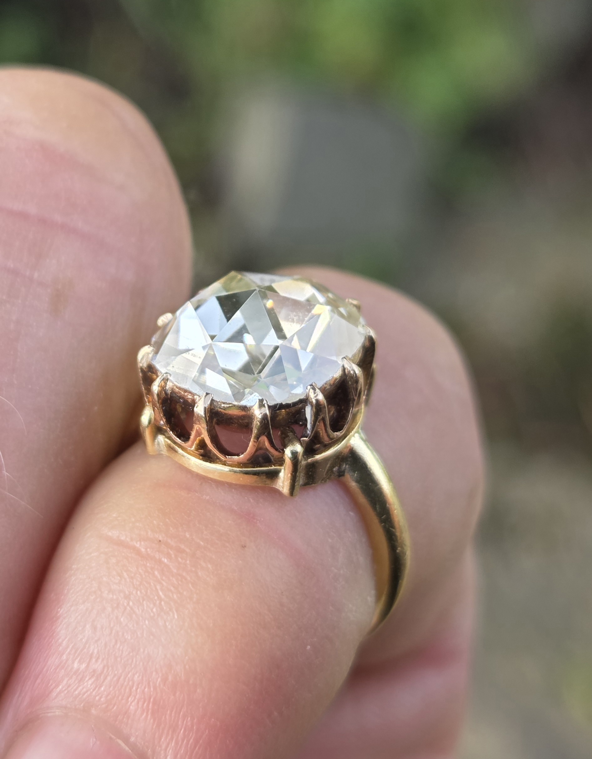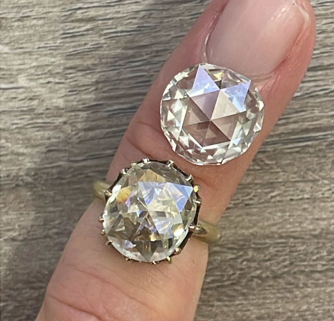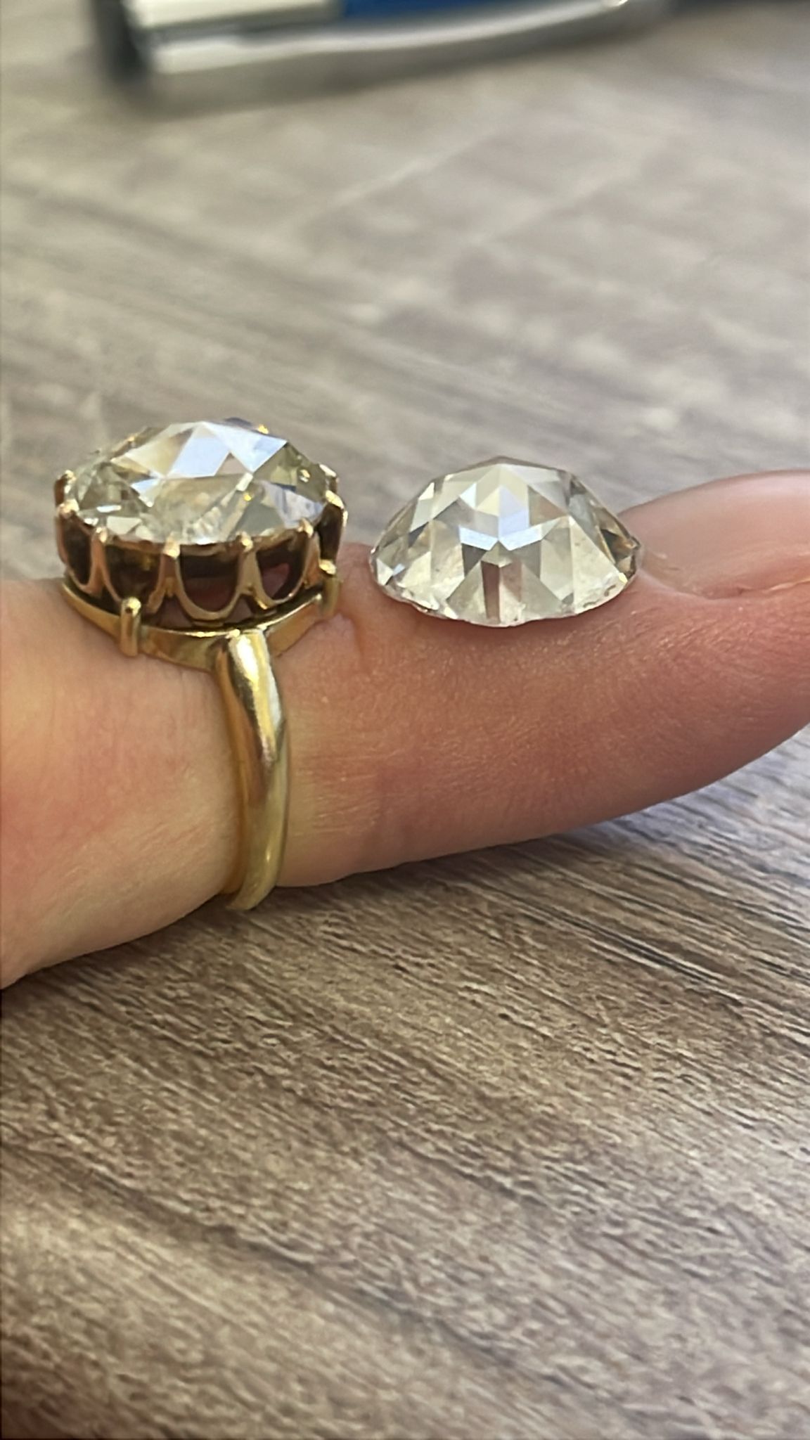 Also included photos of a loose Rose cut, known weight of 3.90ct to give you an idea of size. Comfortably in the region of 3ct but we do not wish to remove from setting.