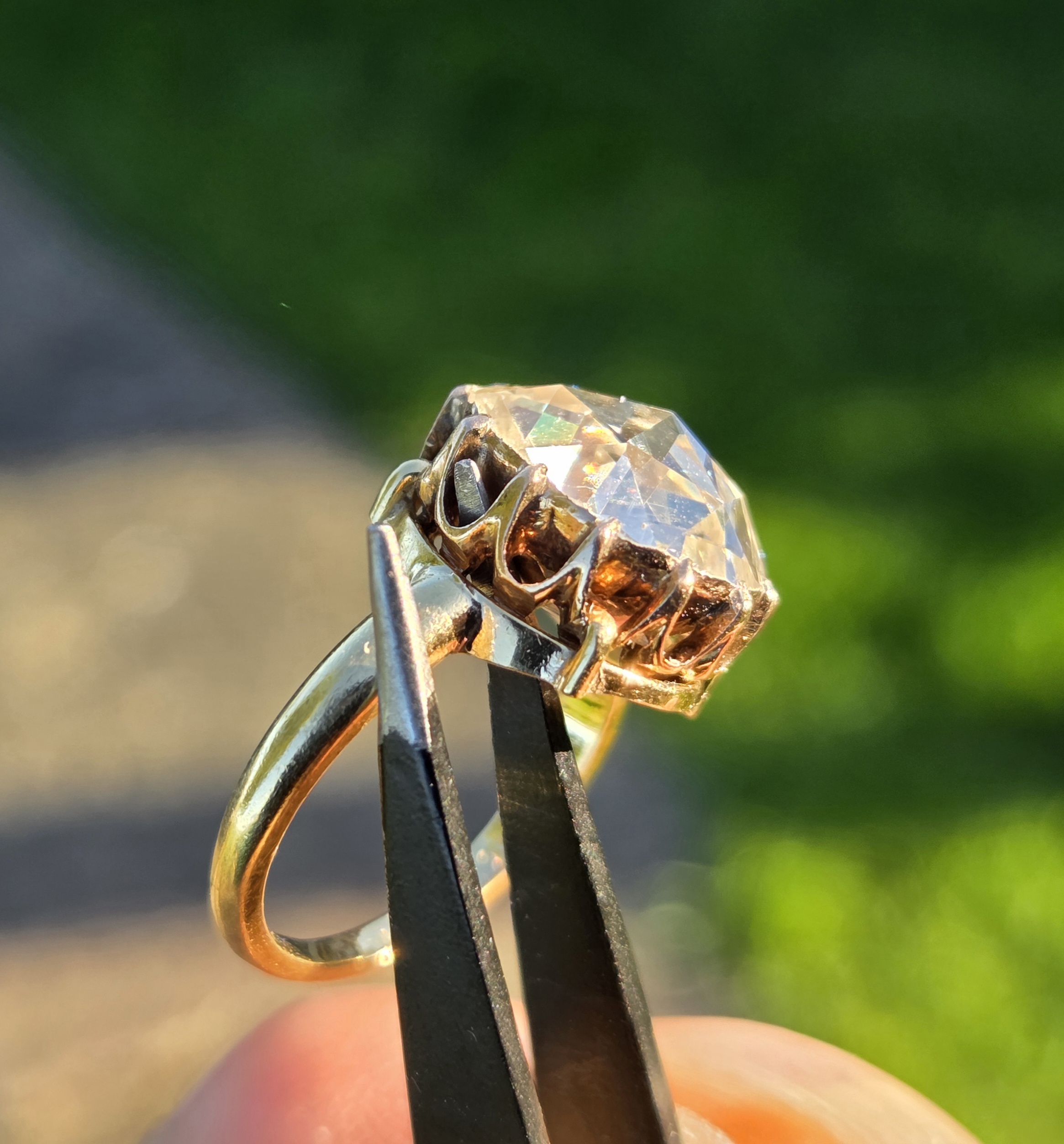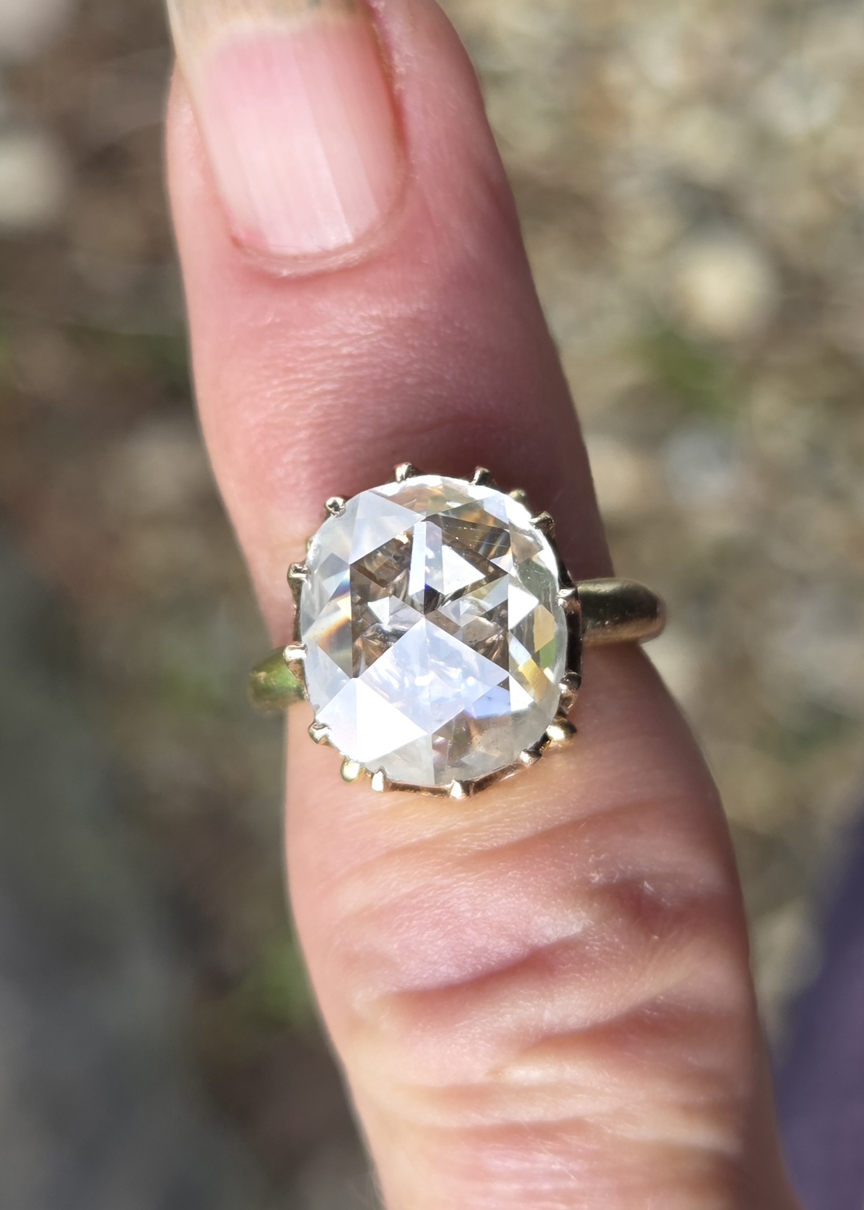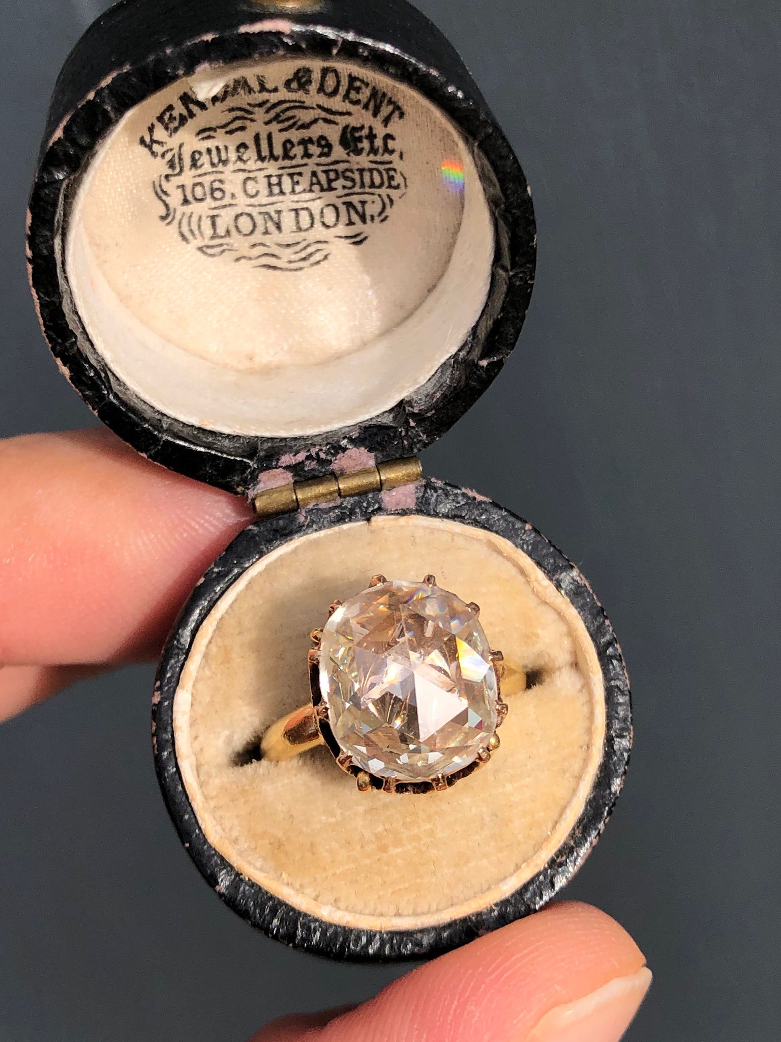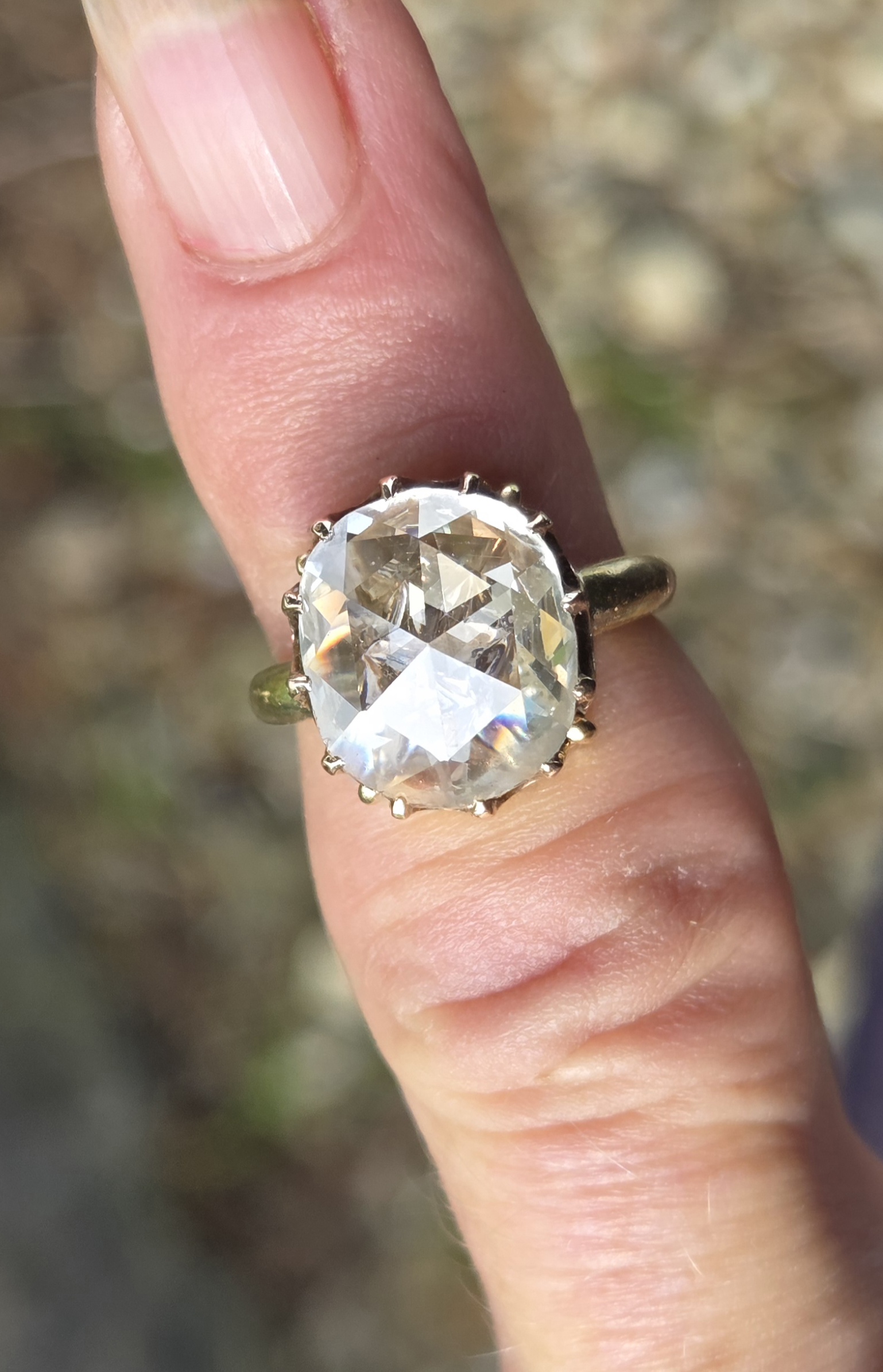 Also included photos of a loose Rose cut, known weight of 3.90ct to give you an idea of size. Comfortably in the region of 3ct but we do not wish to remove from setting.