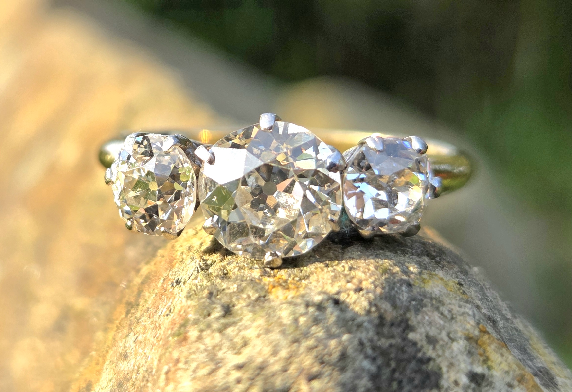 Centre stone measures 6.7mm x 6.5mm = 1.20ct.