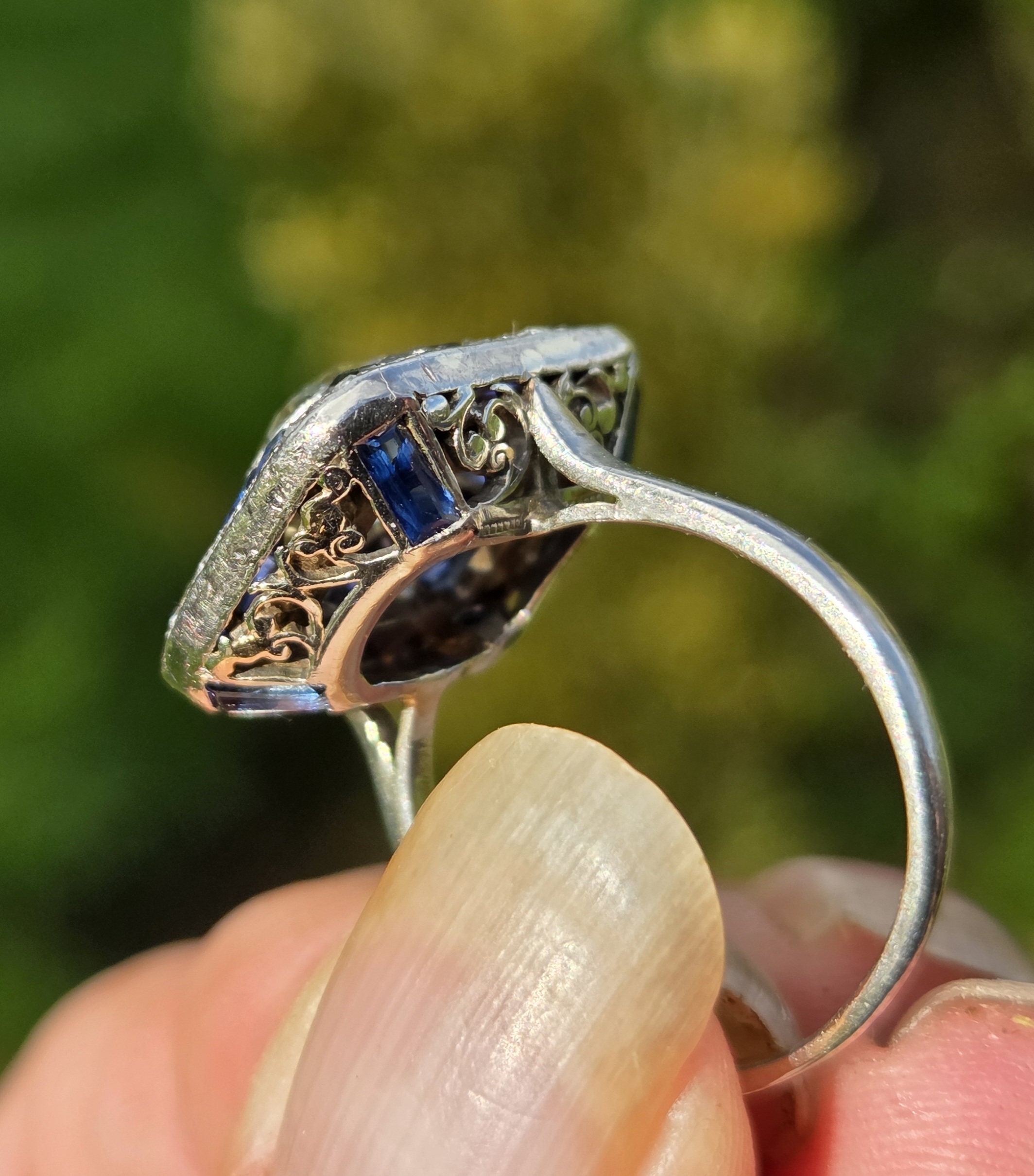 Wonderful detailing and craftsmanship, sapphires even set in gallery!