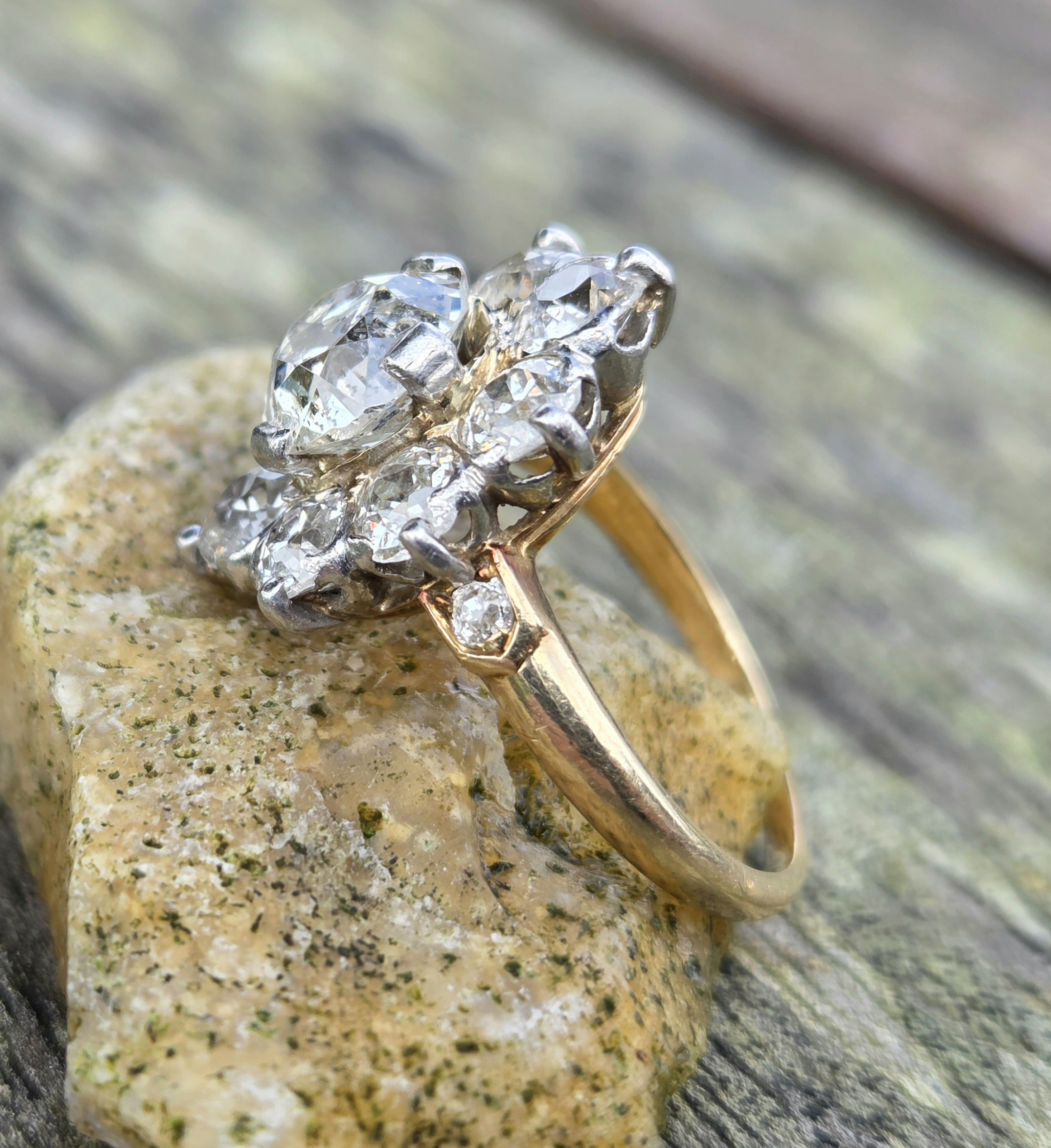 Surrounding are 8 old cuts, the 2 largest are 4.5mm, 0.40ct each.