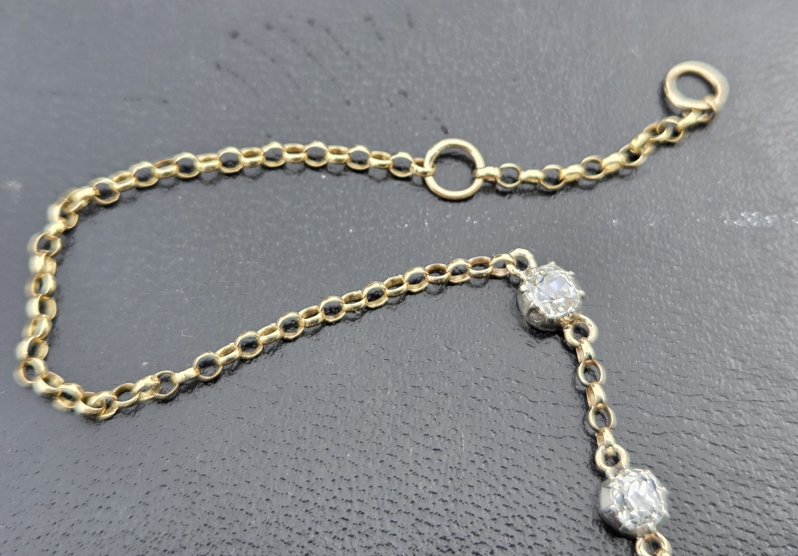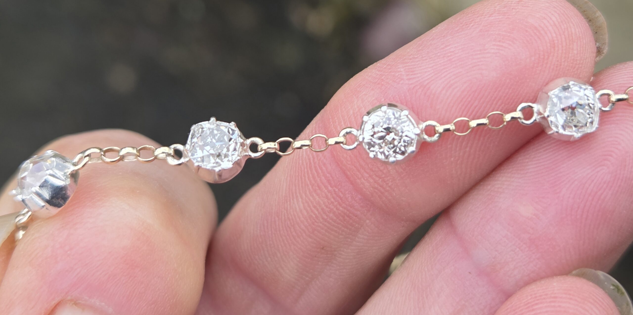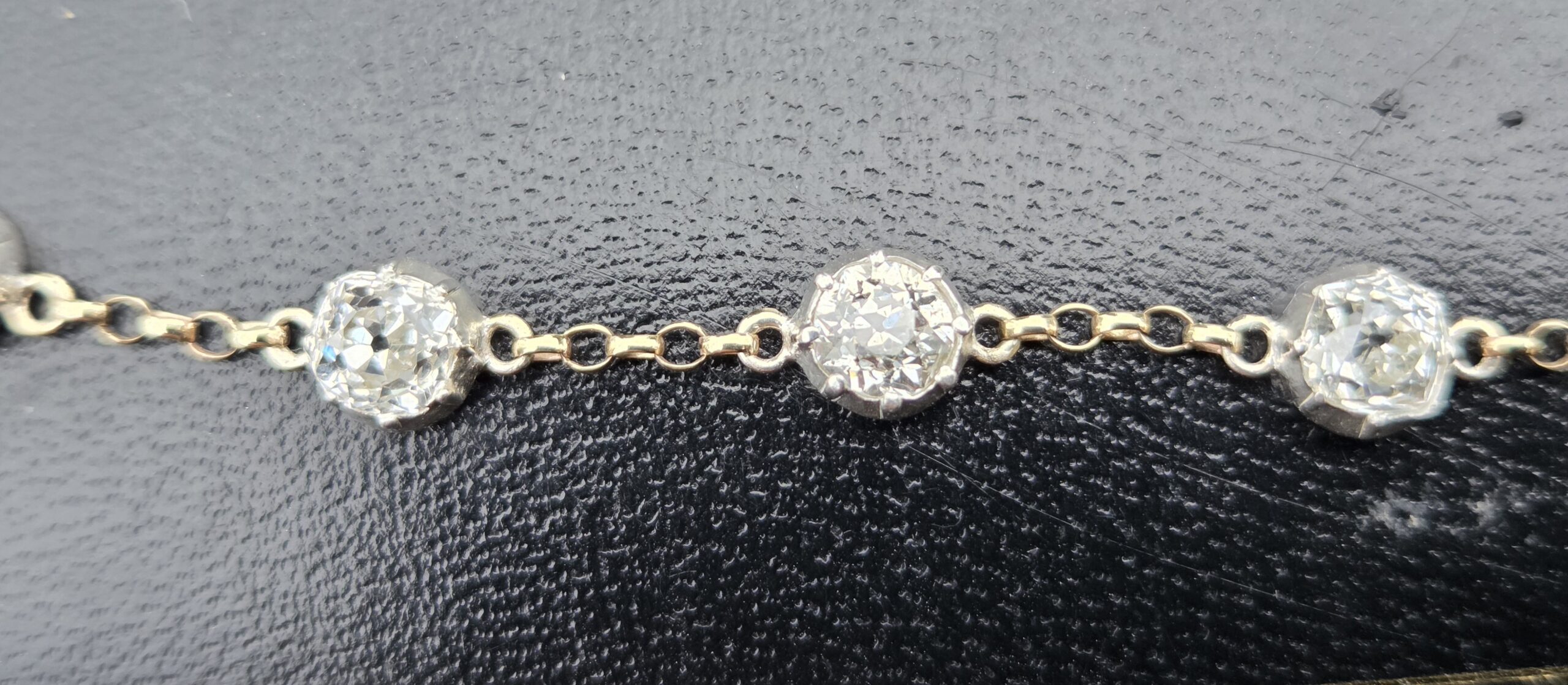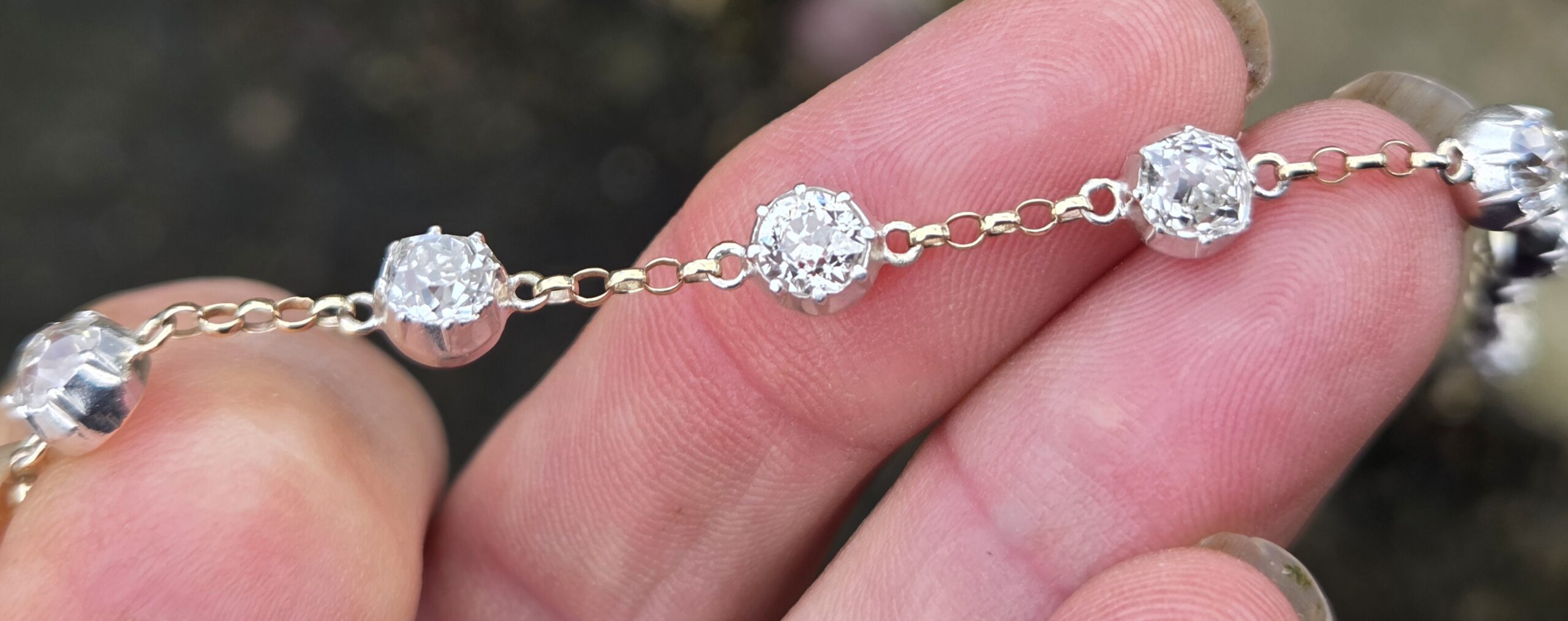 A fine link 9ct Belcher chain with Old Mine cut Diamonds in silver antique cut down settings.