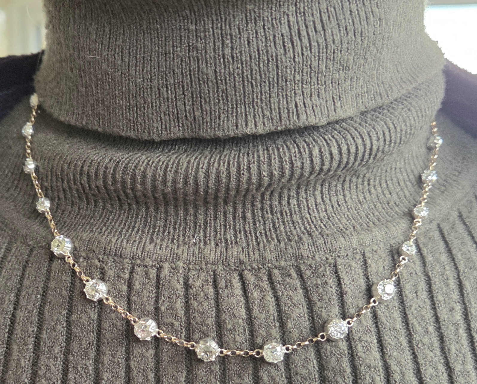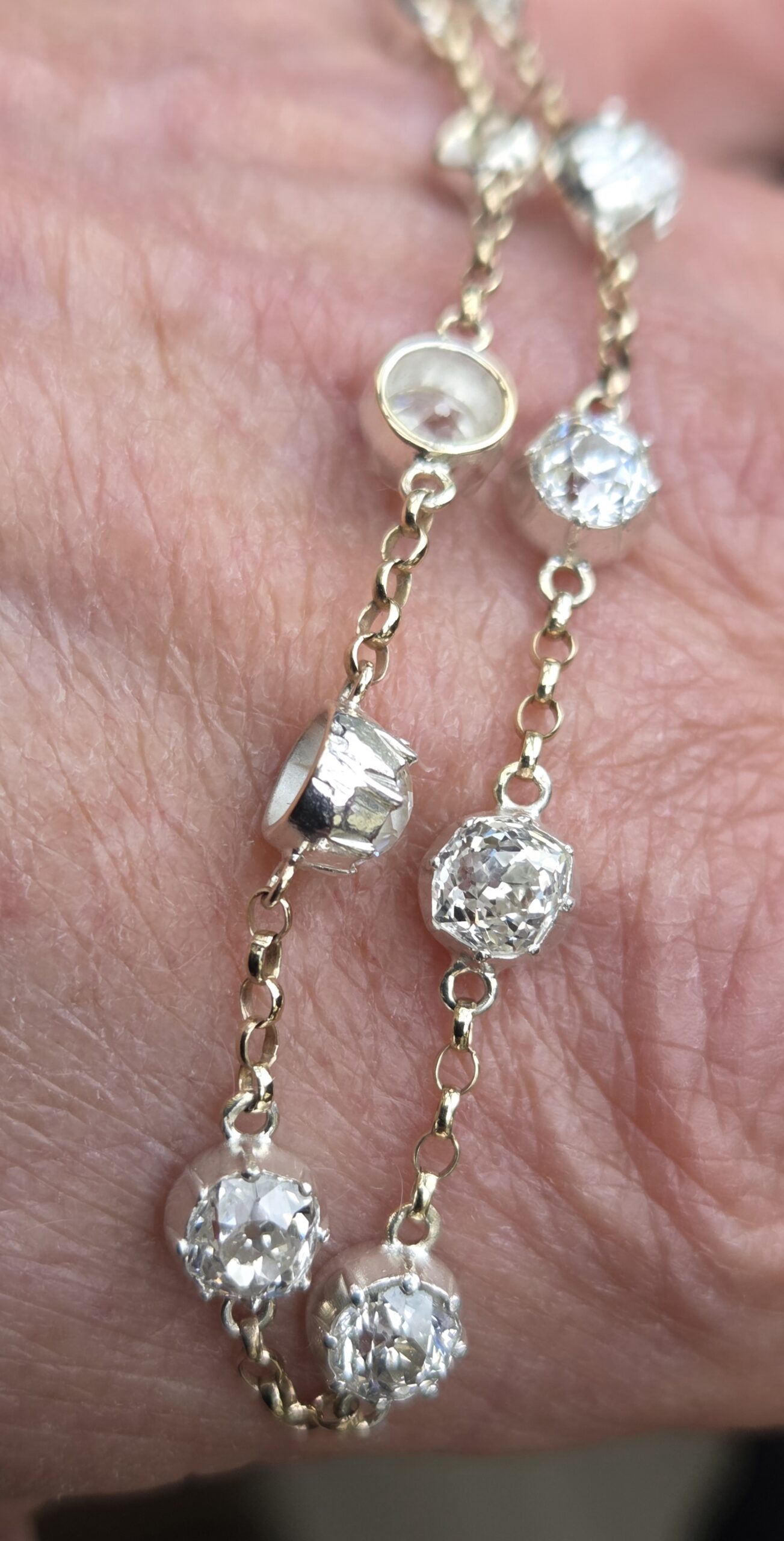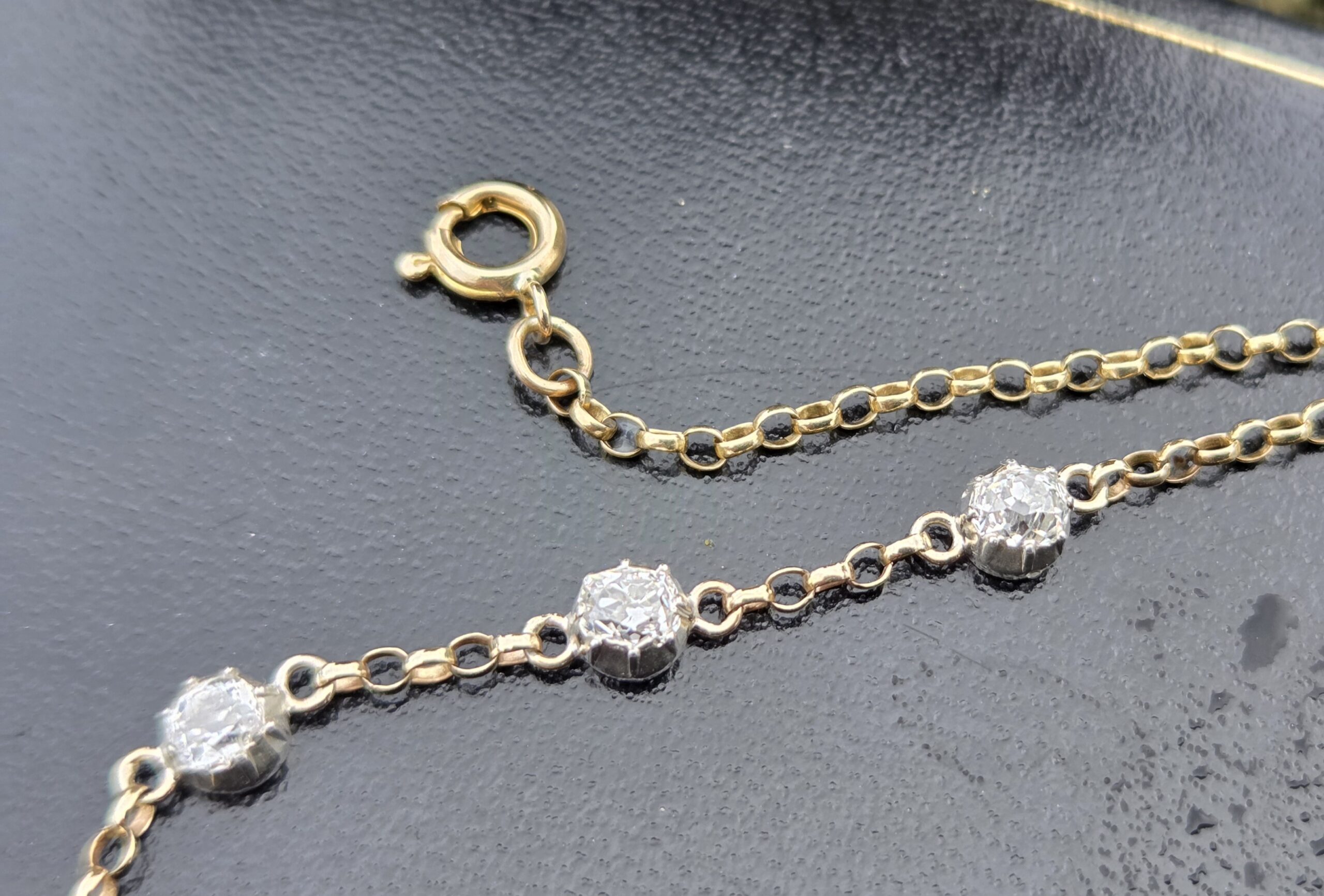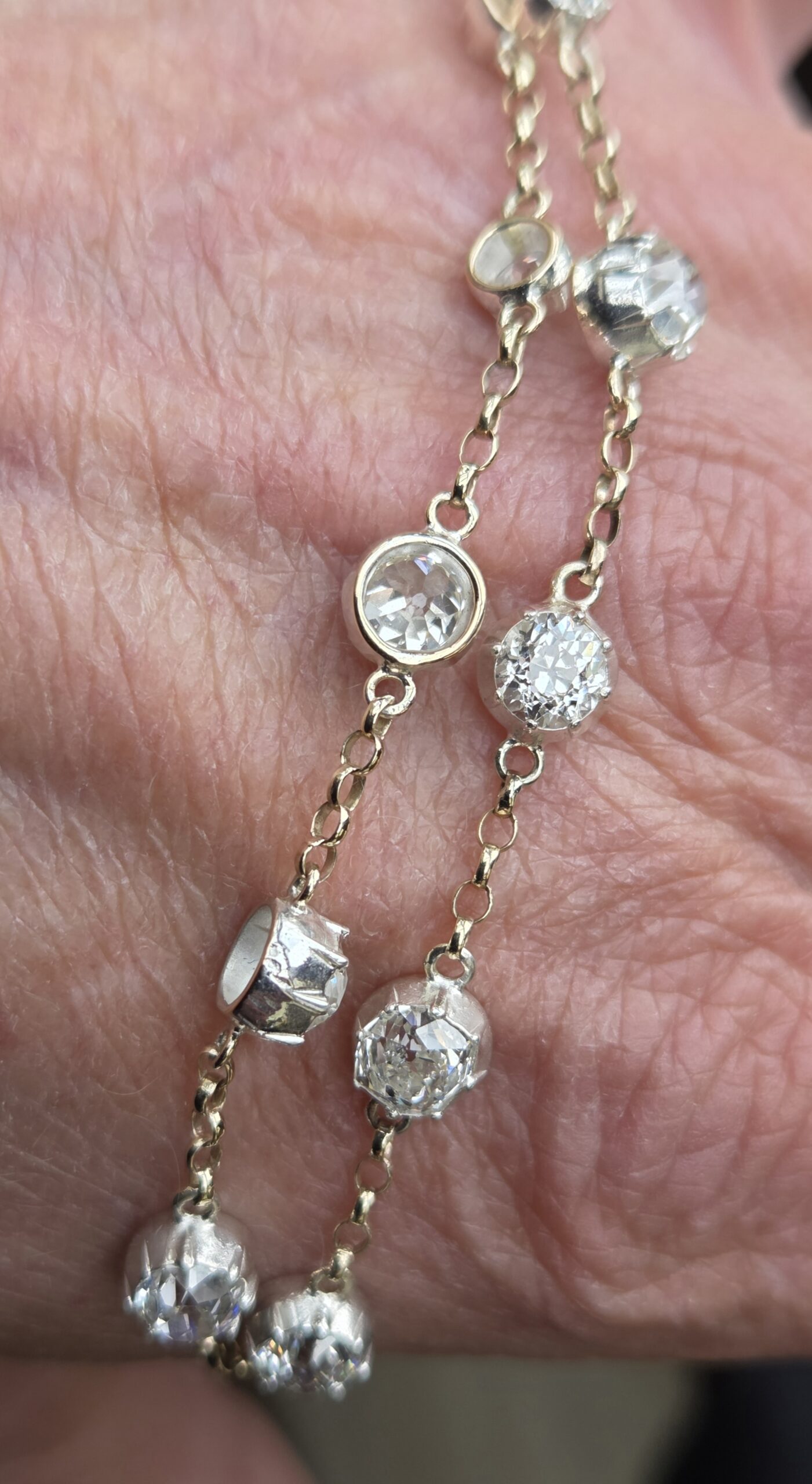 A fine link 9ct Belcher chain with Old Mine cut Diamonds in silver antique cut down settings.