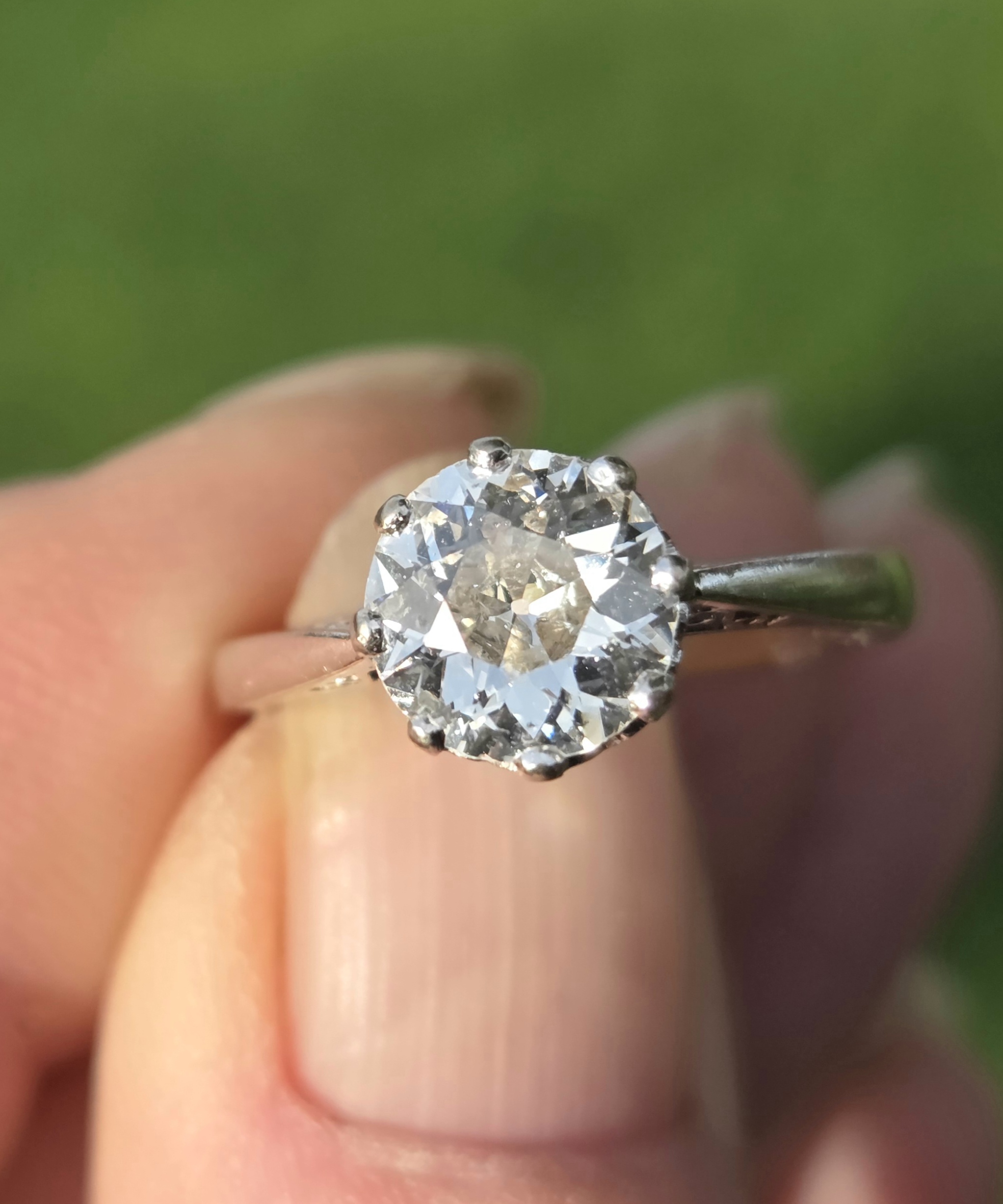 A gorgeous, lively old cut diamond in a secure, simple, low profile setting making it very wearable.