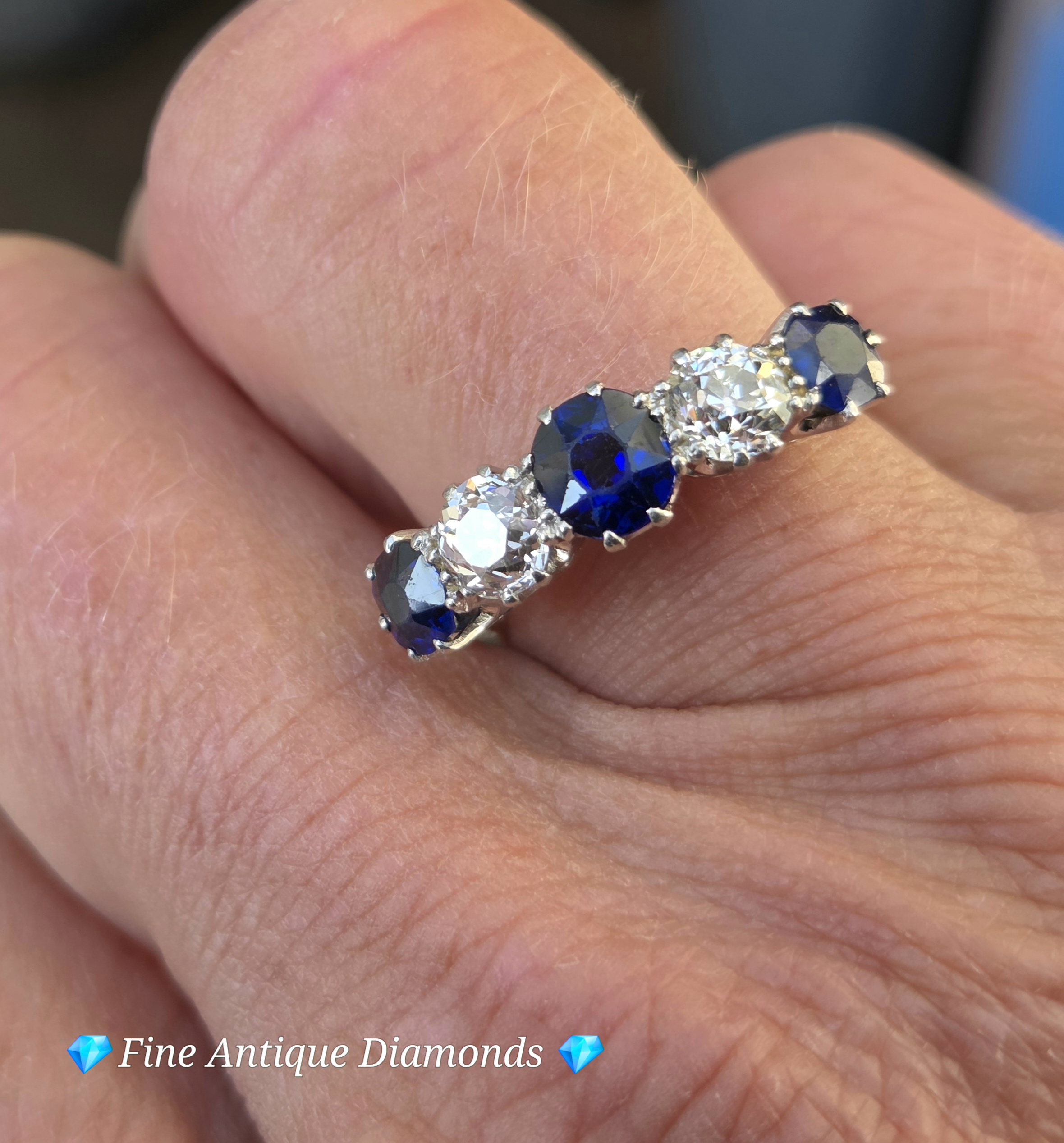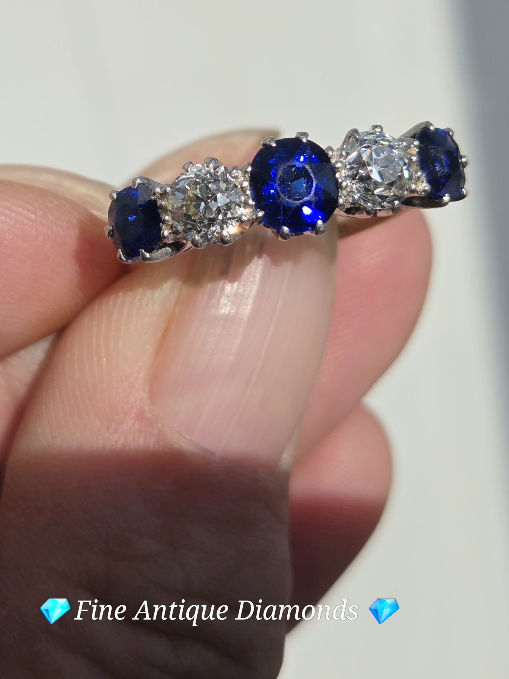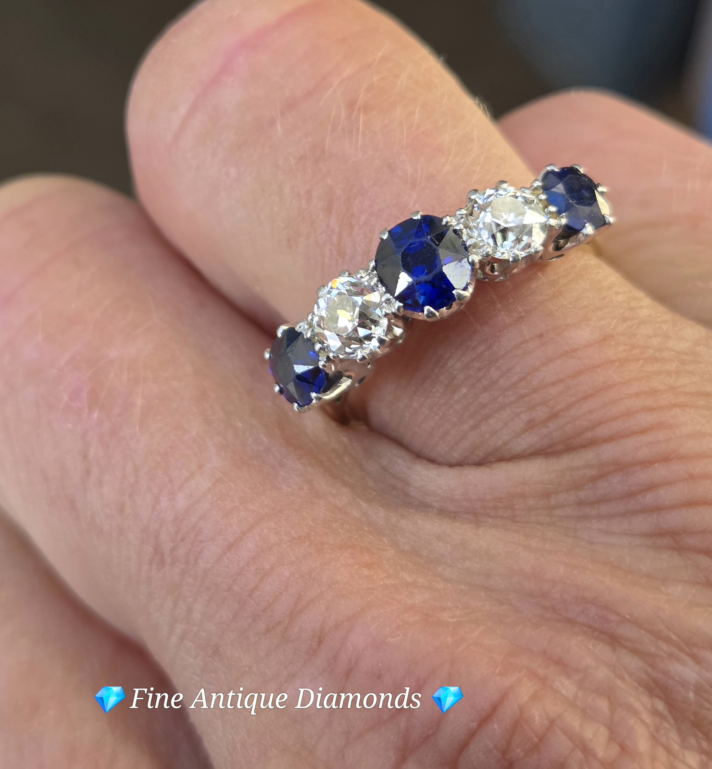 Exceptional Sapphire & Old Cut Diamond 5 stone/Eternity