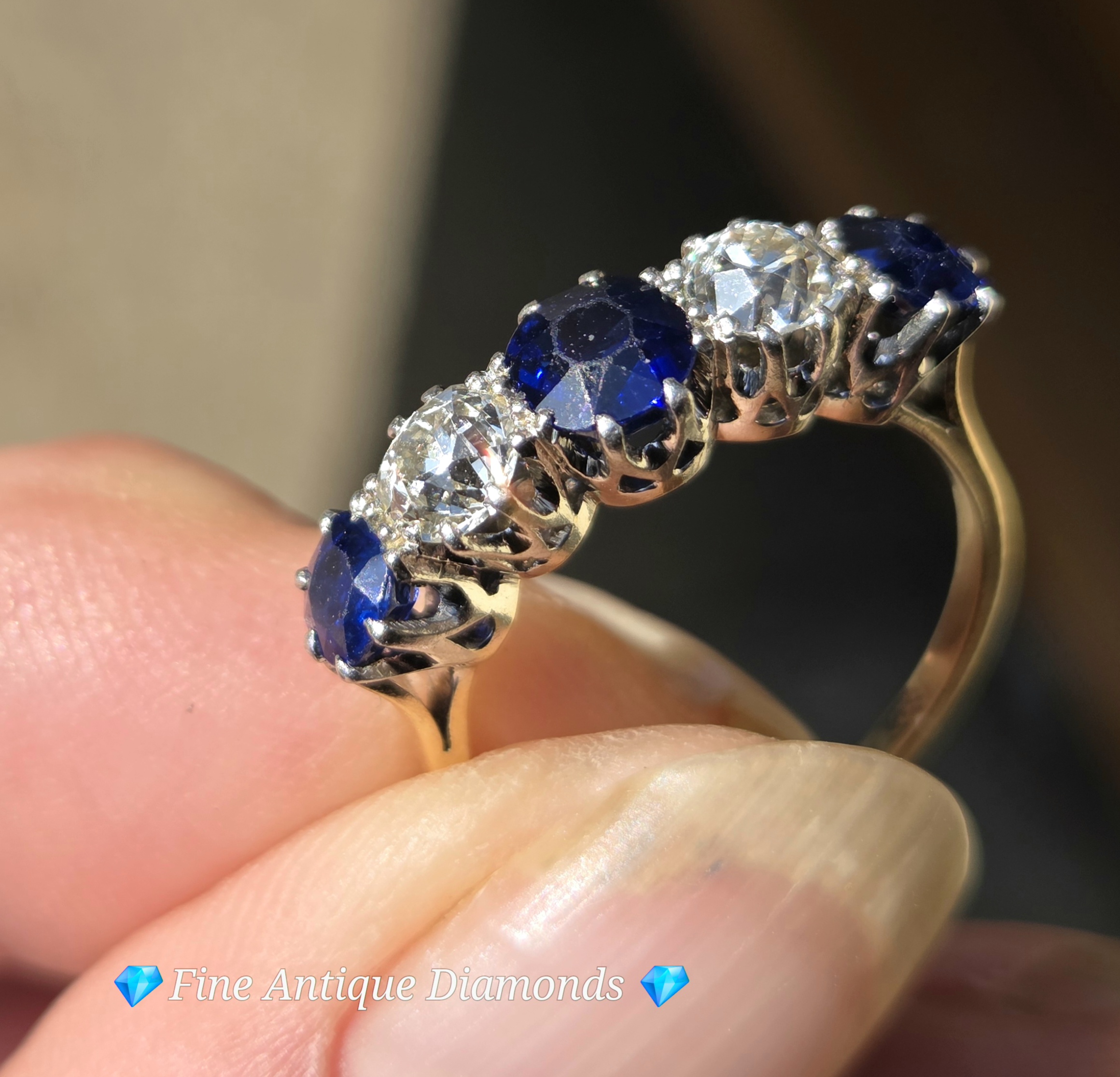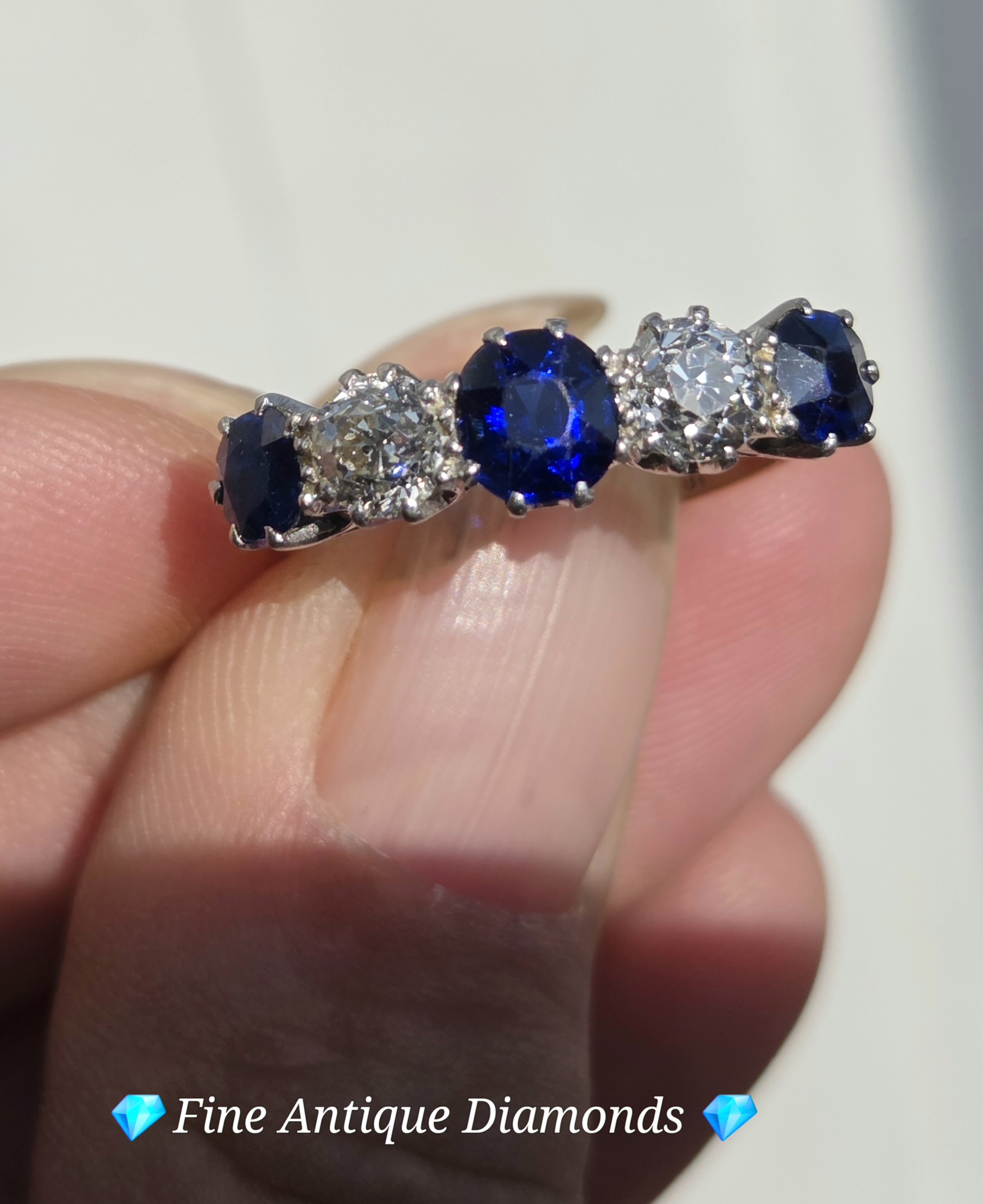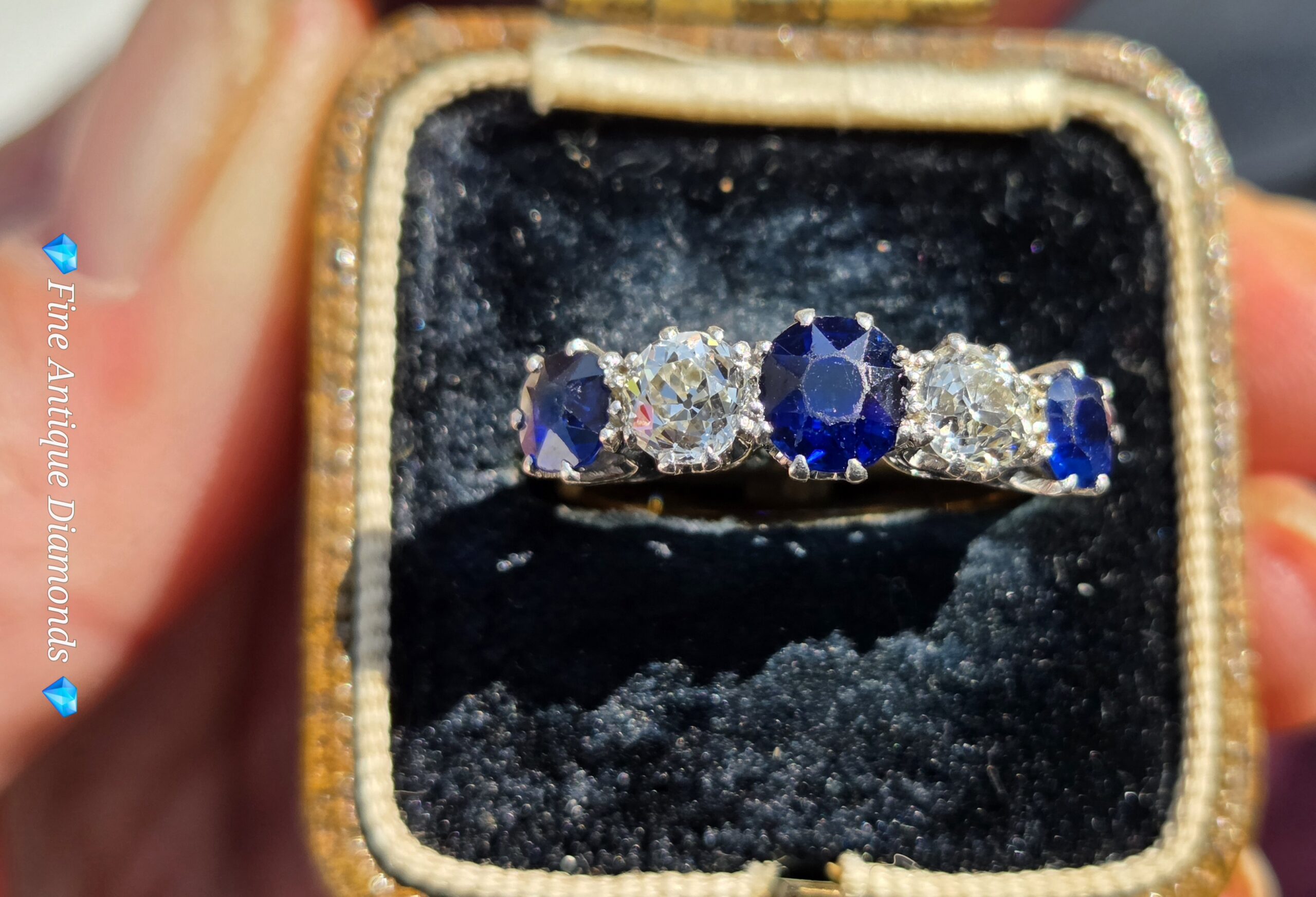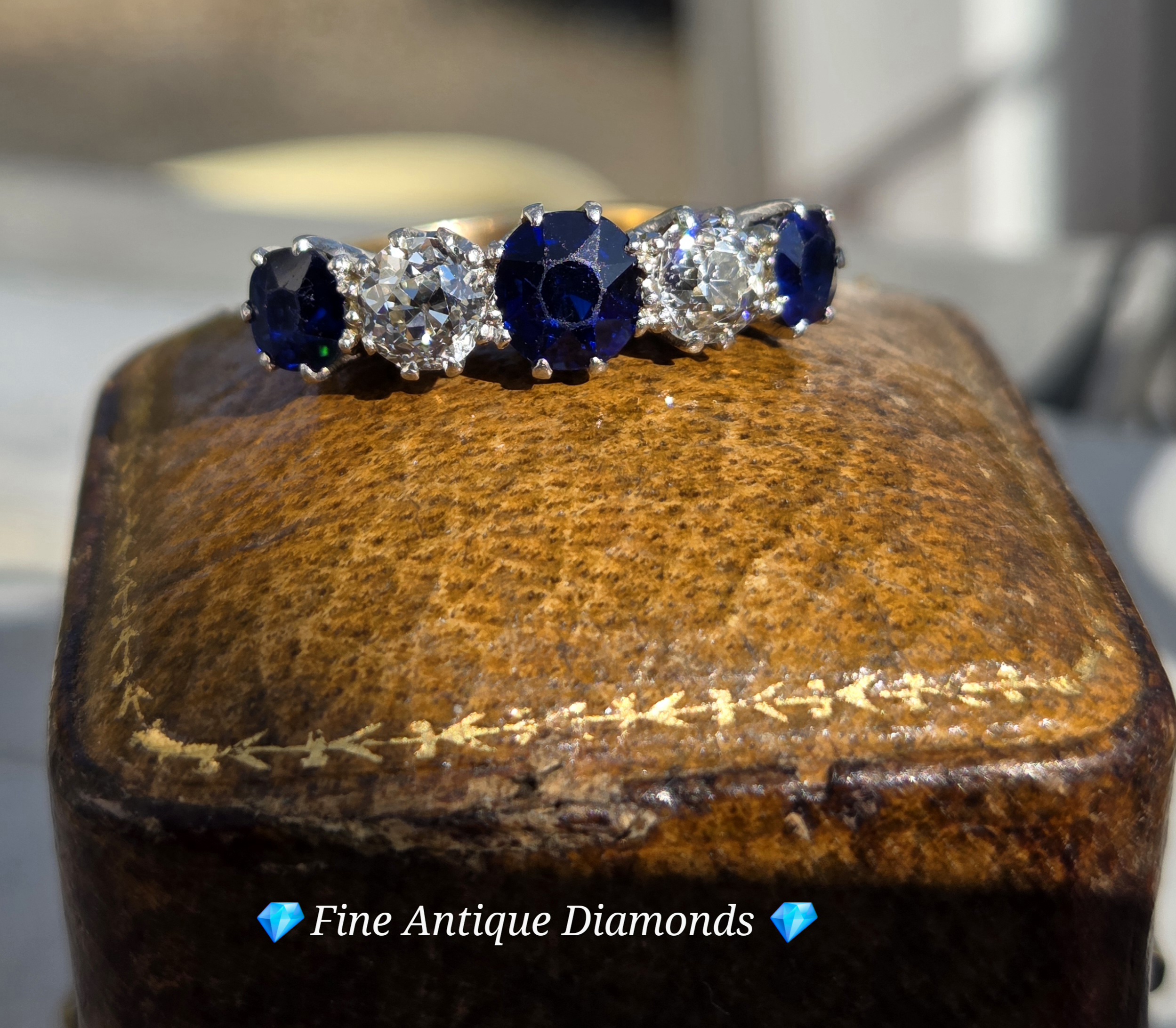 Exceptional Sapphire & Old Cut Diamond 5 stone/Eternity