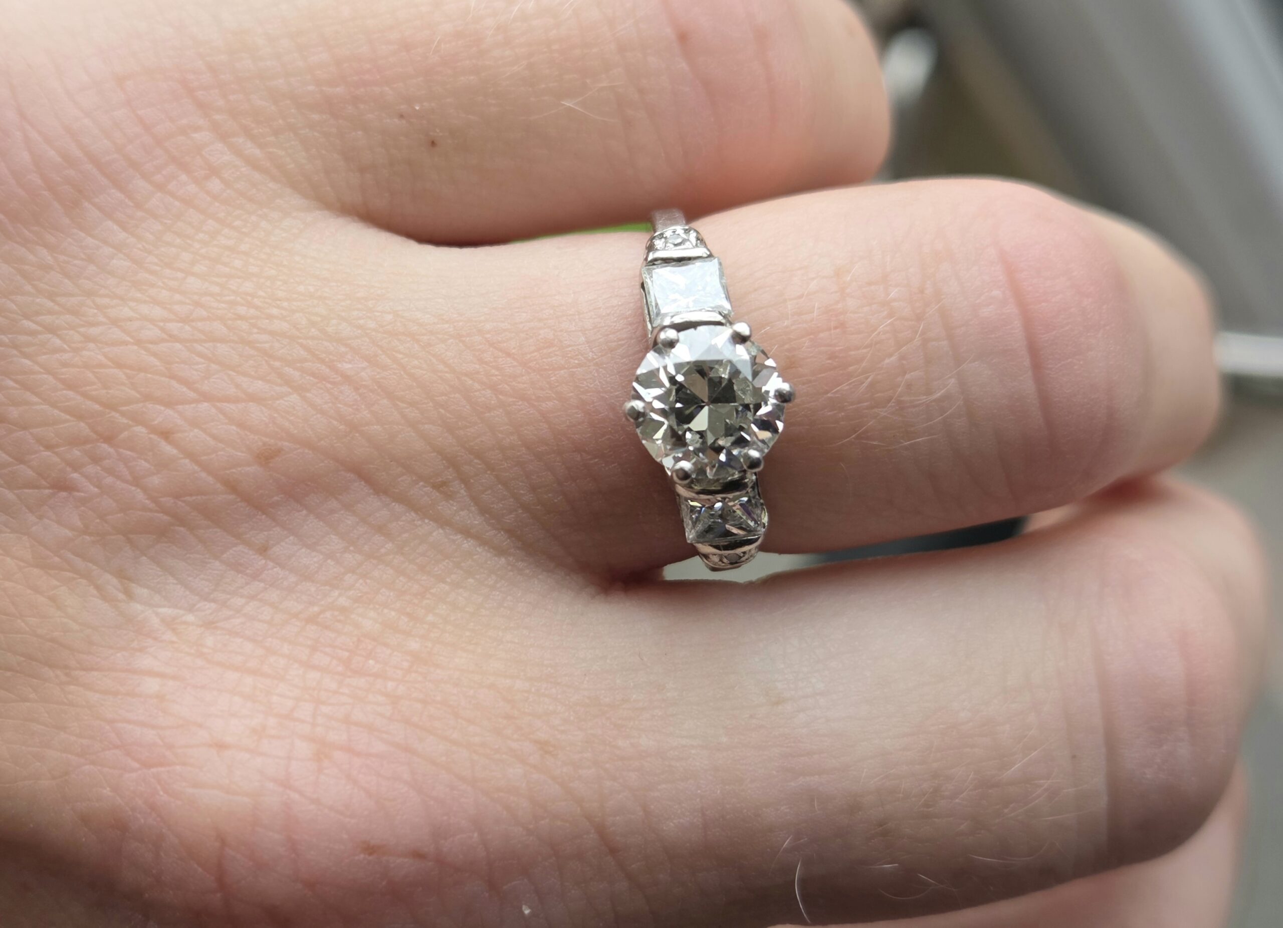 Faulous Old European cut Diamond of exceptional colour and clarity VS/H. Platinum.
