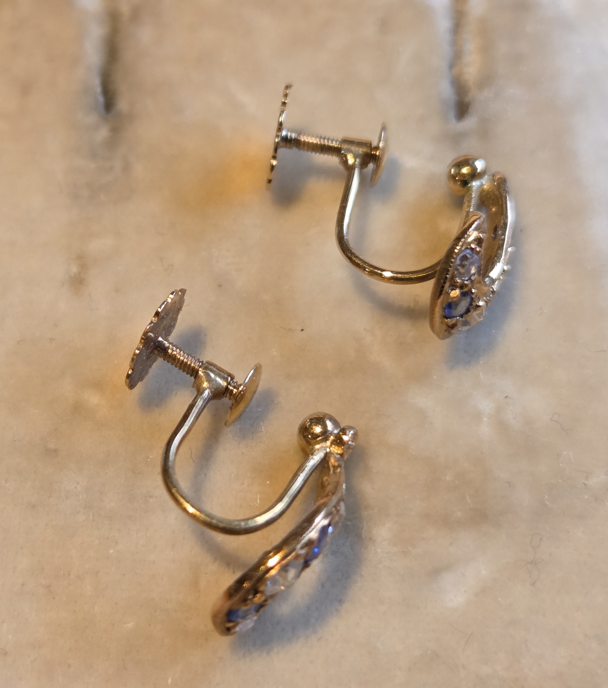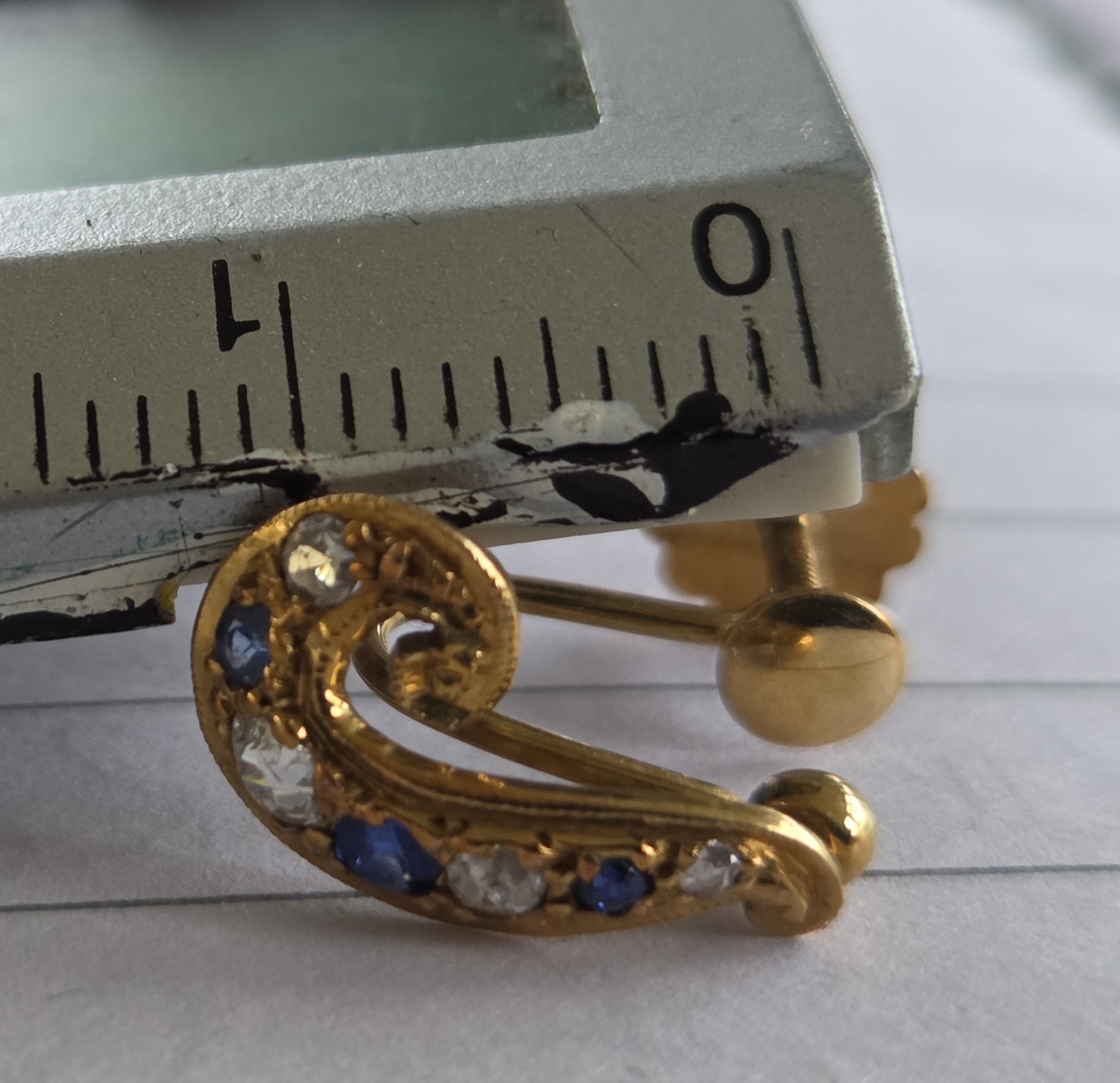 X 3 sapphires per earring, estimated at 0.20ct total.