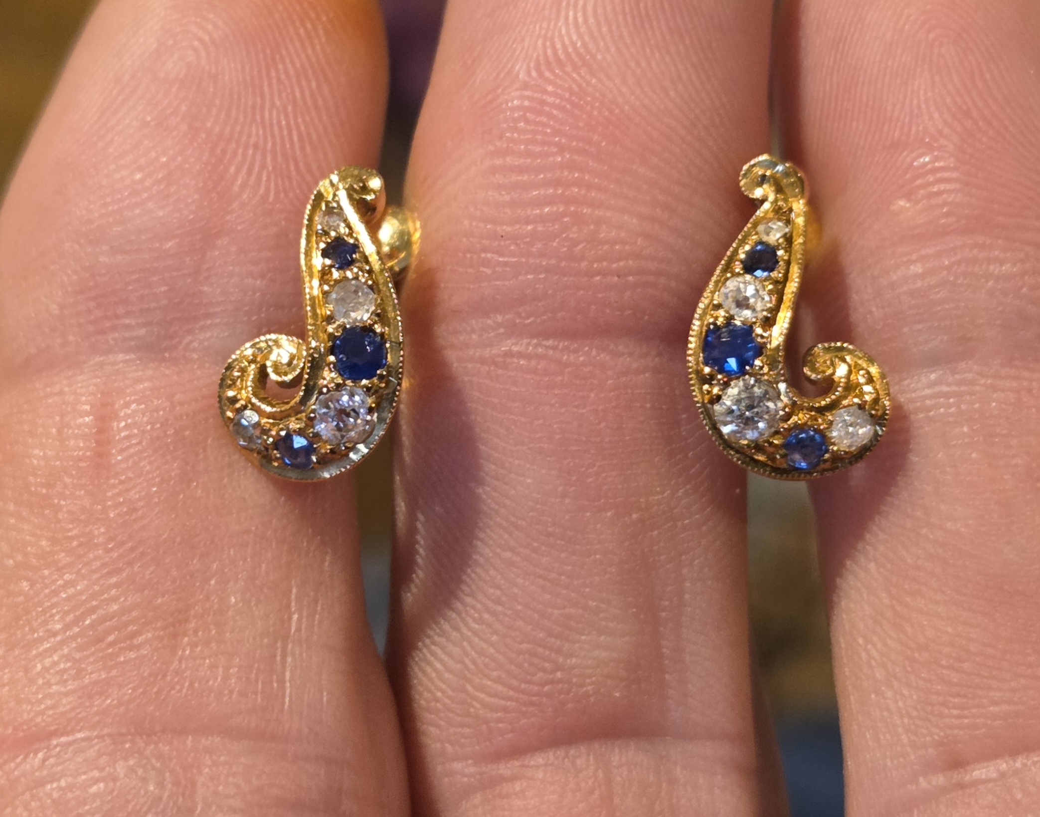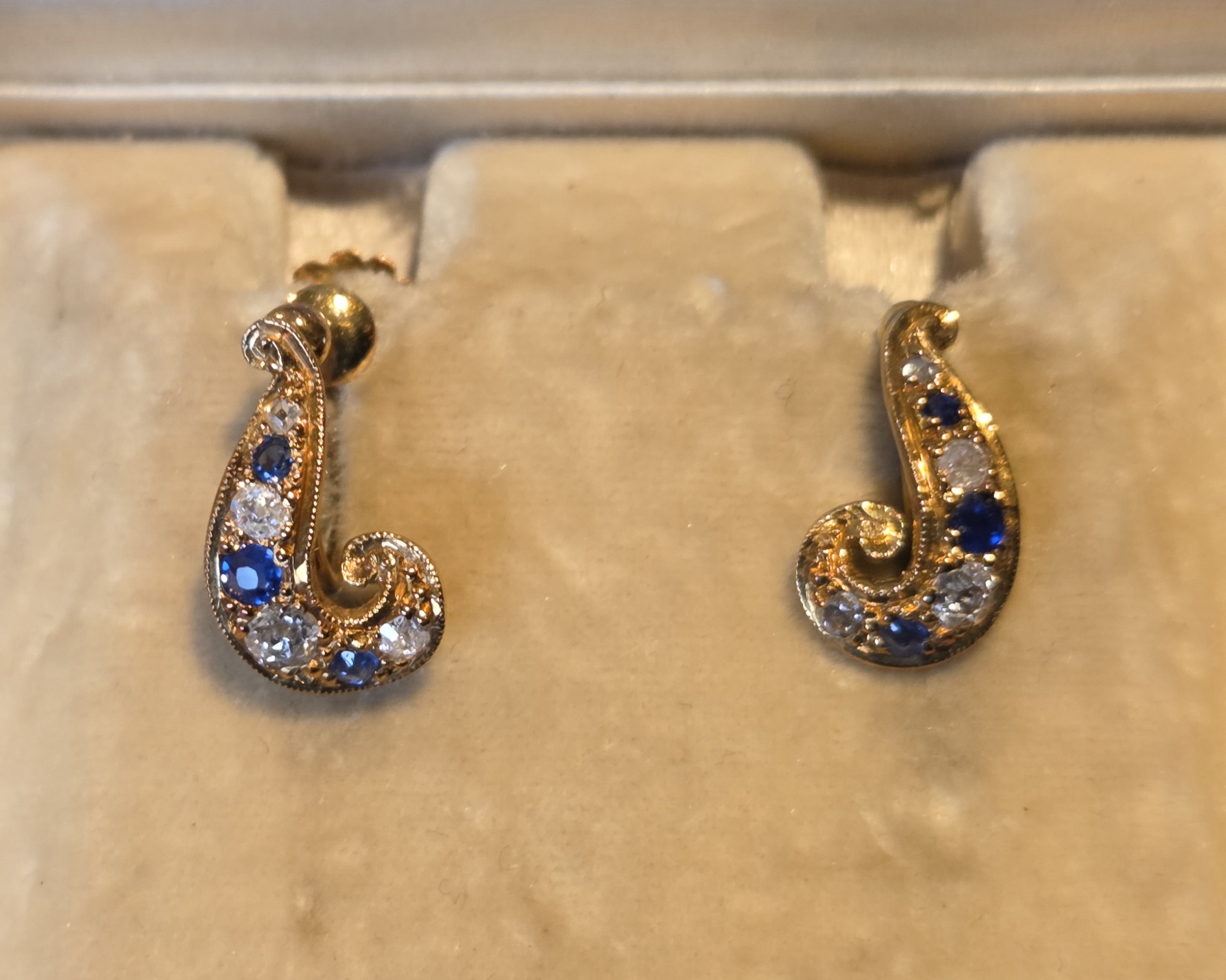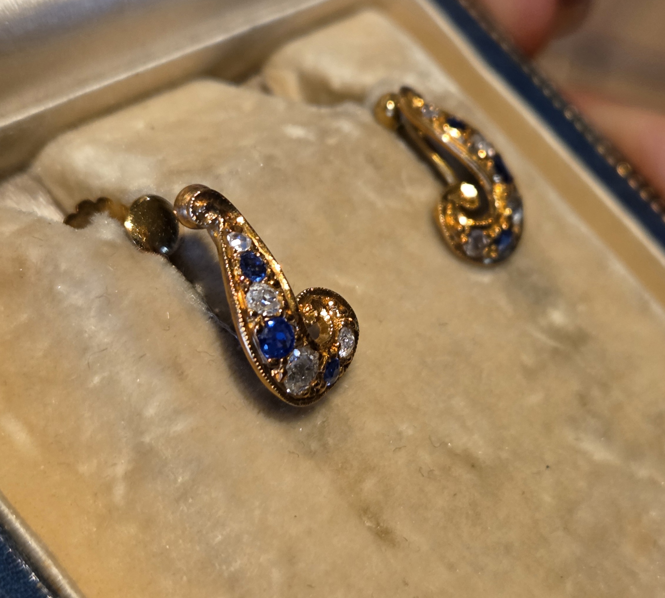 Fabulous Old Cut Diamond & Natural Sapphire earrings.