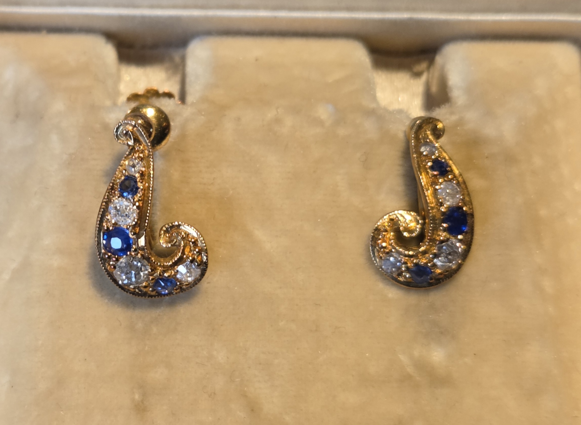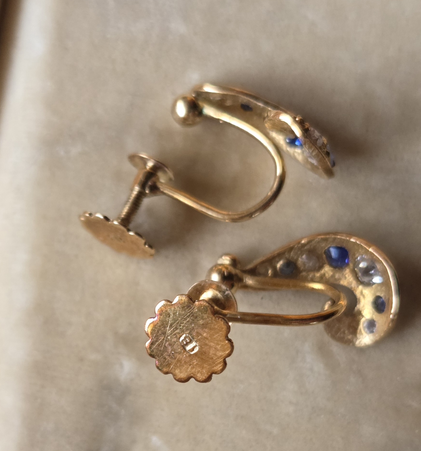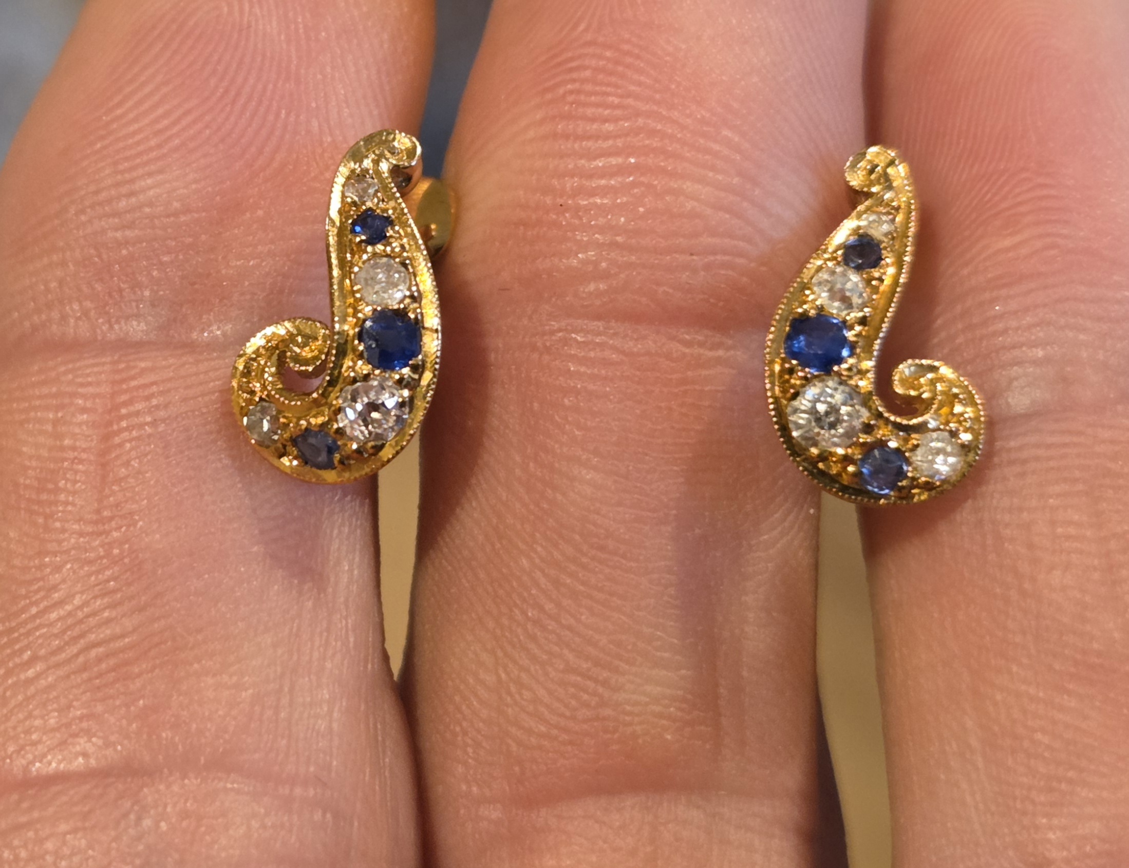 Fabulous Old Cut Diamond & Natural Sapphire earrings.