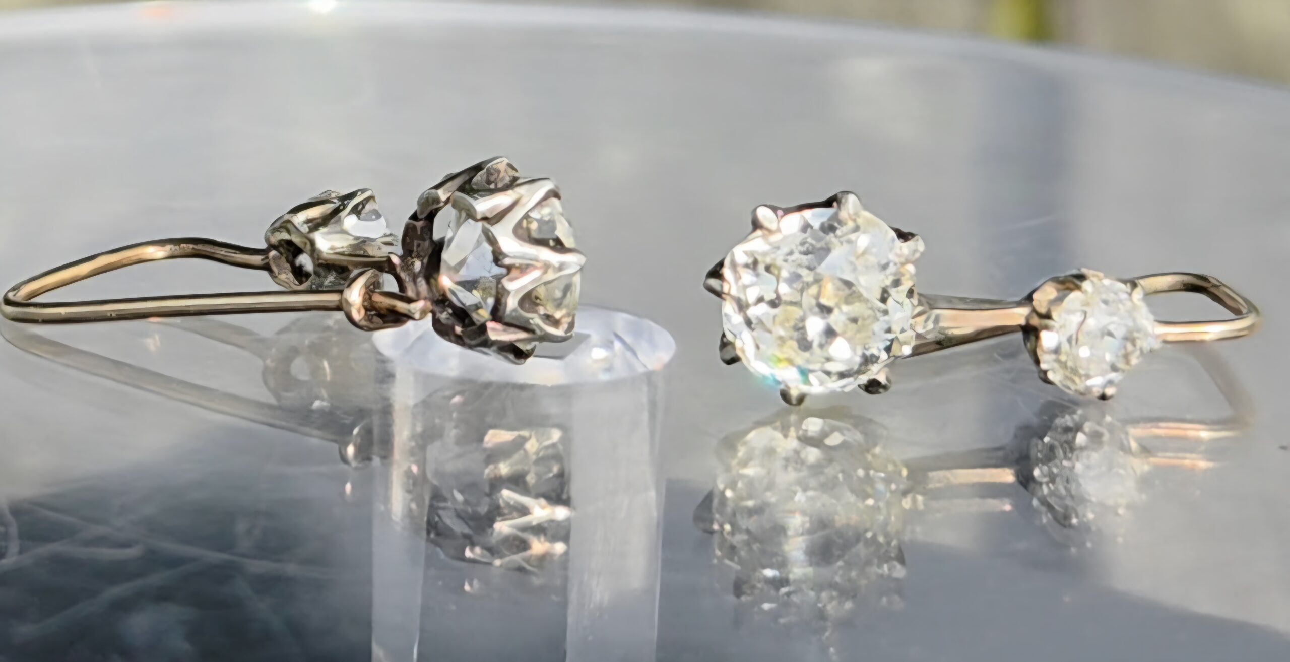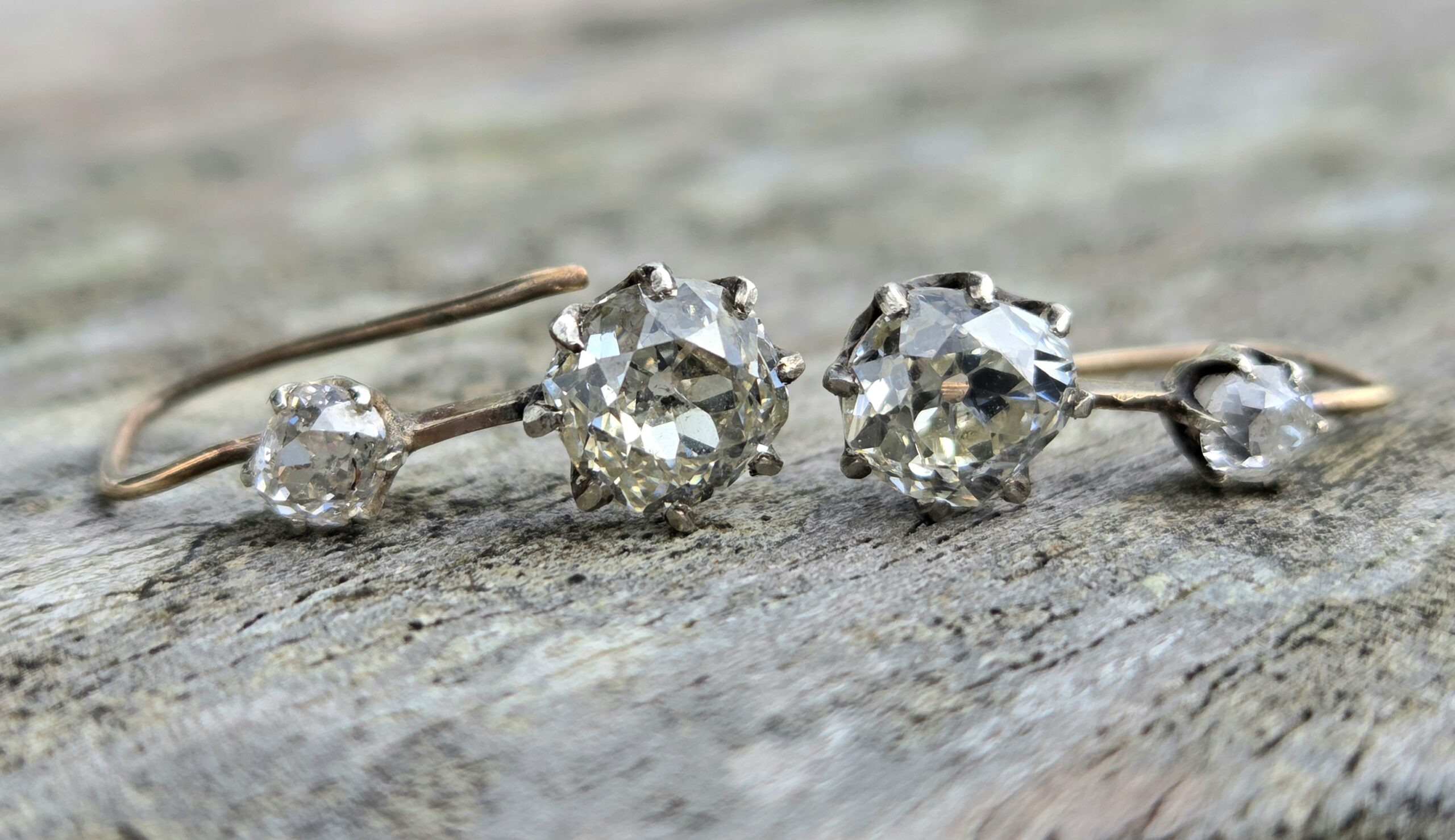 Clean, bright diamonds wth slight colour draw as is common with Old Mine cuts.