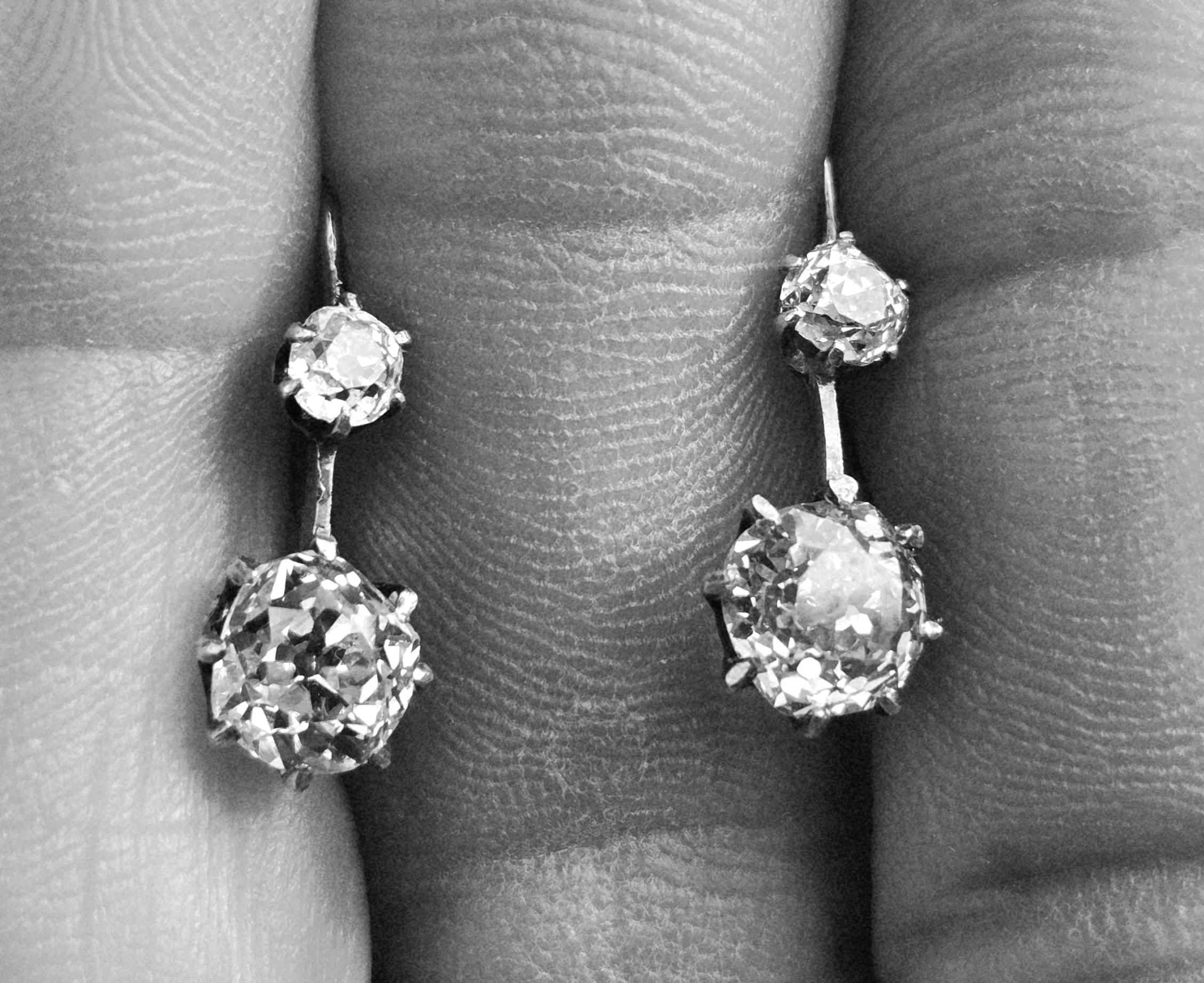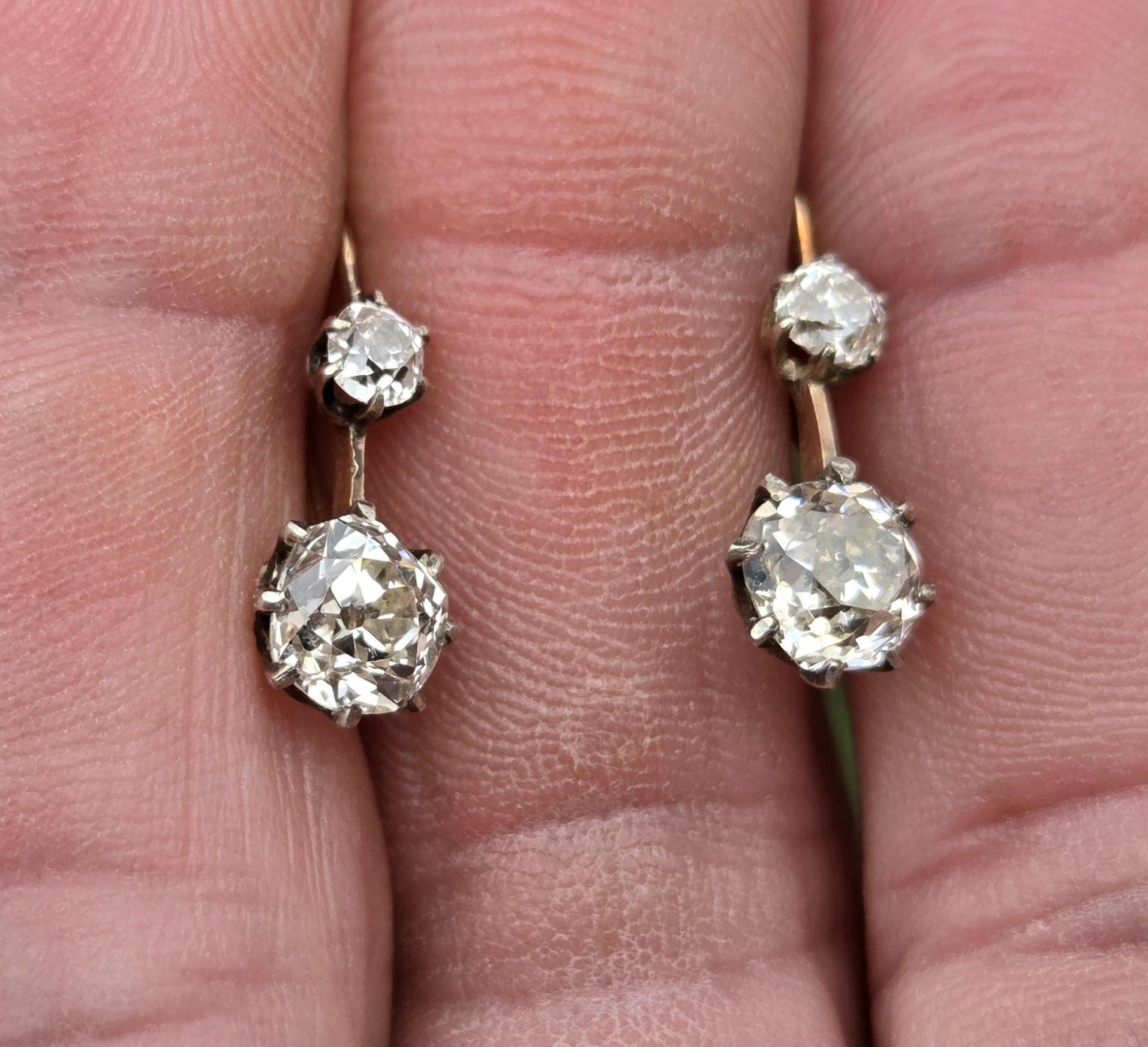 Rather lovely old mine cut double diamond earrings.