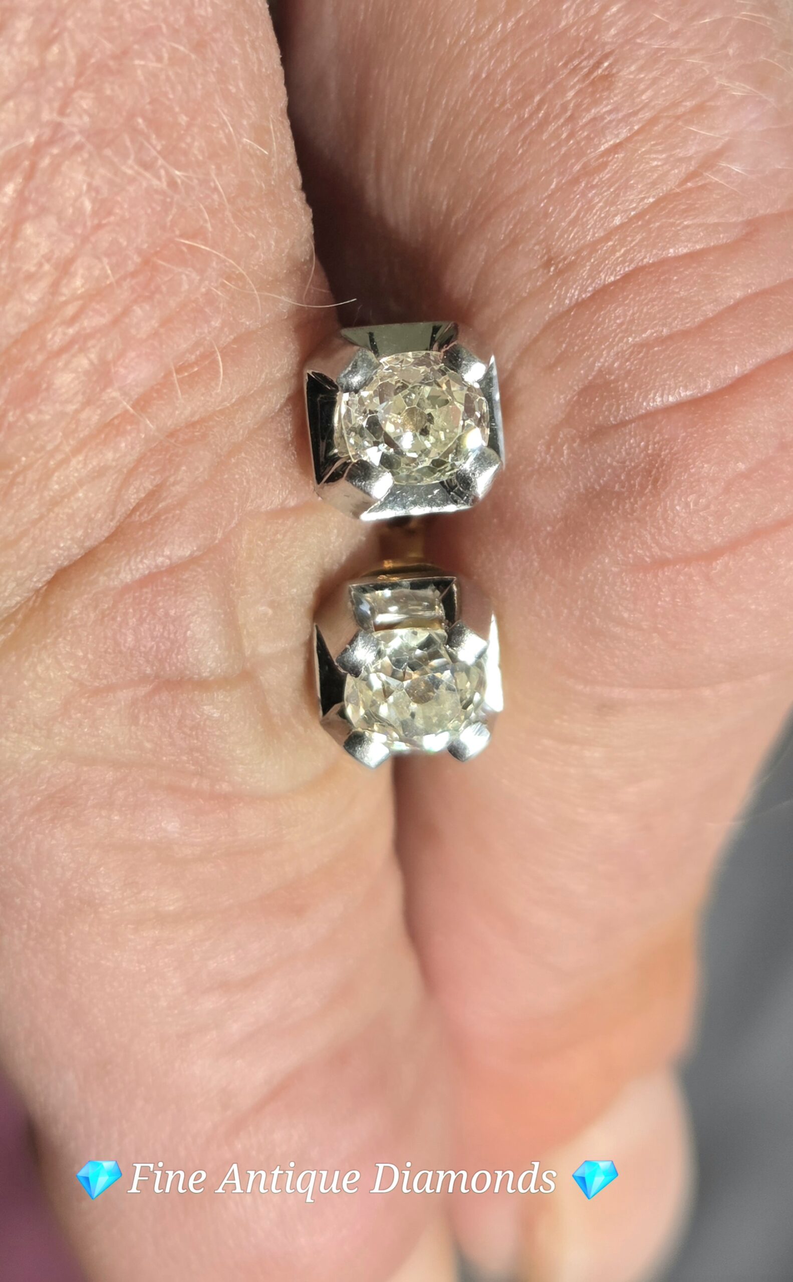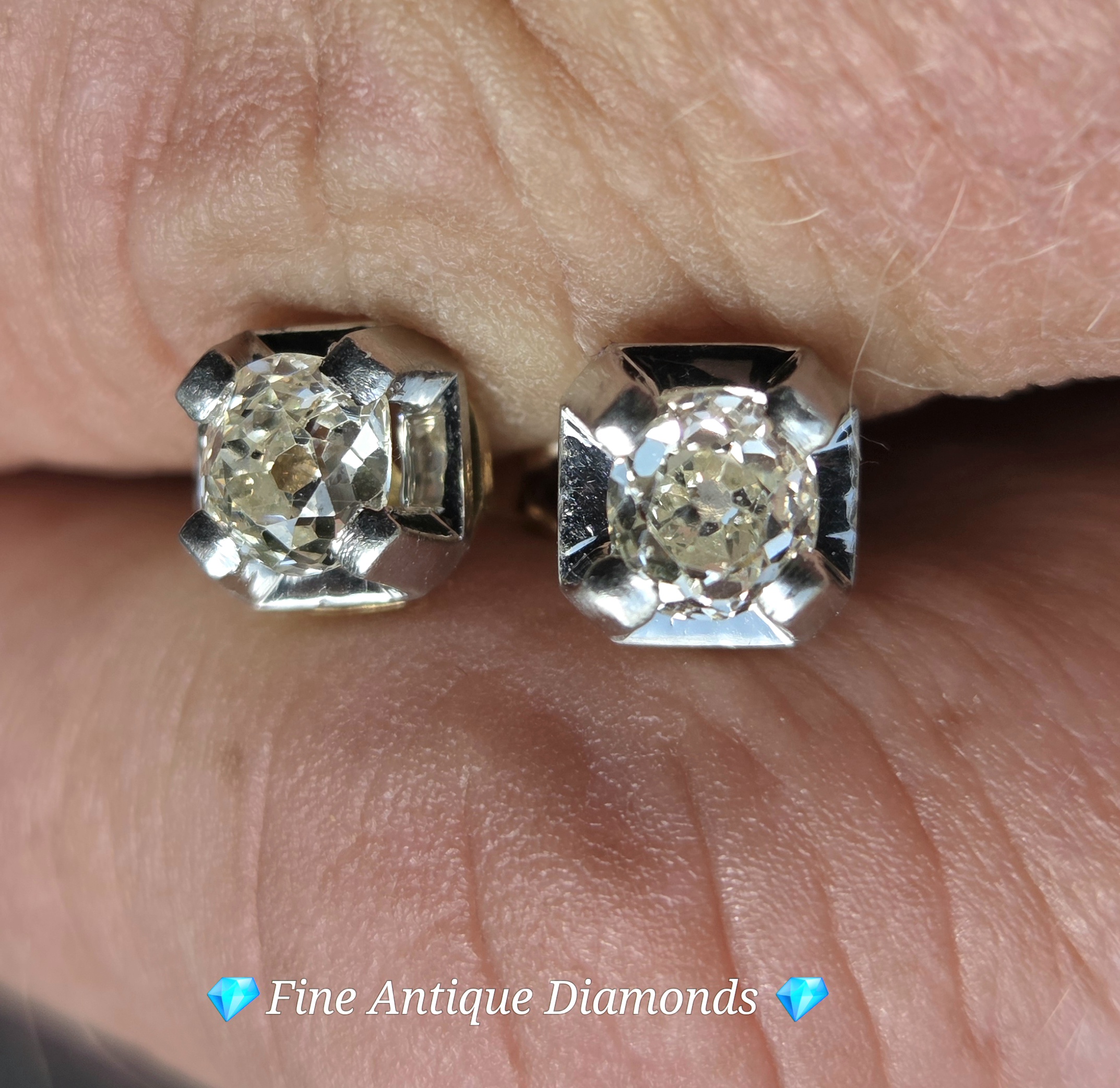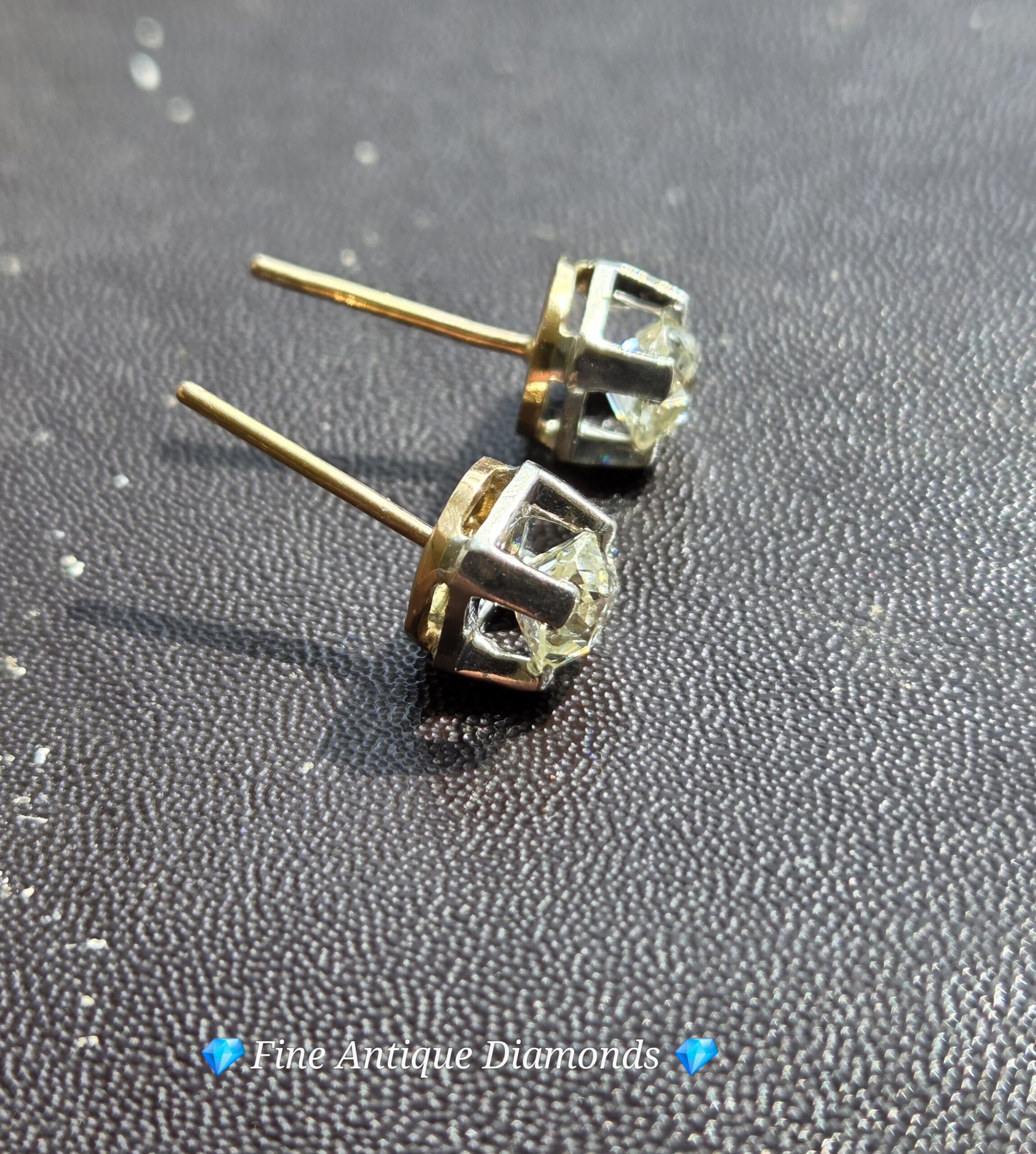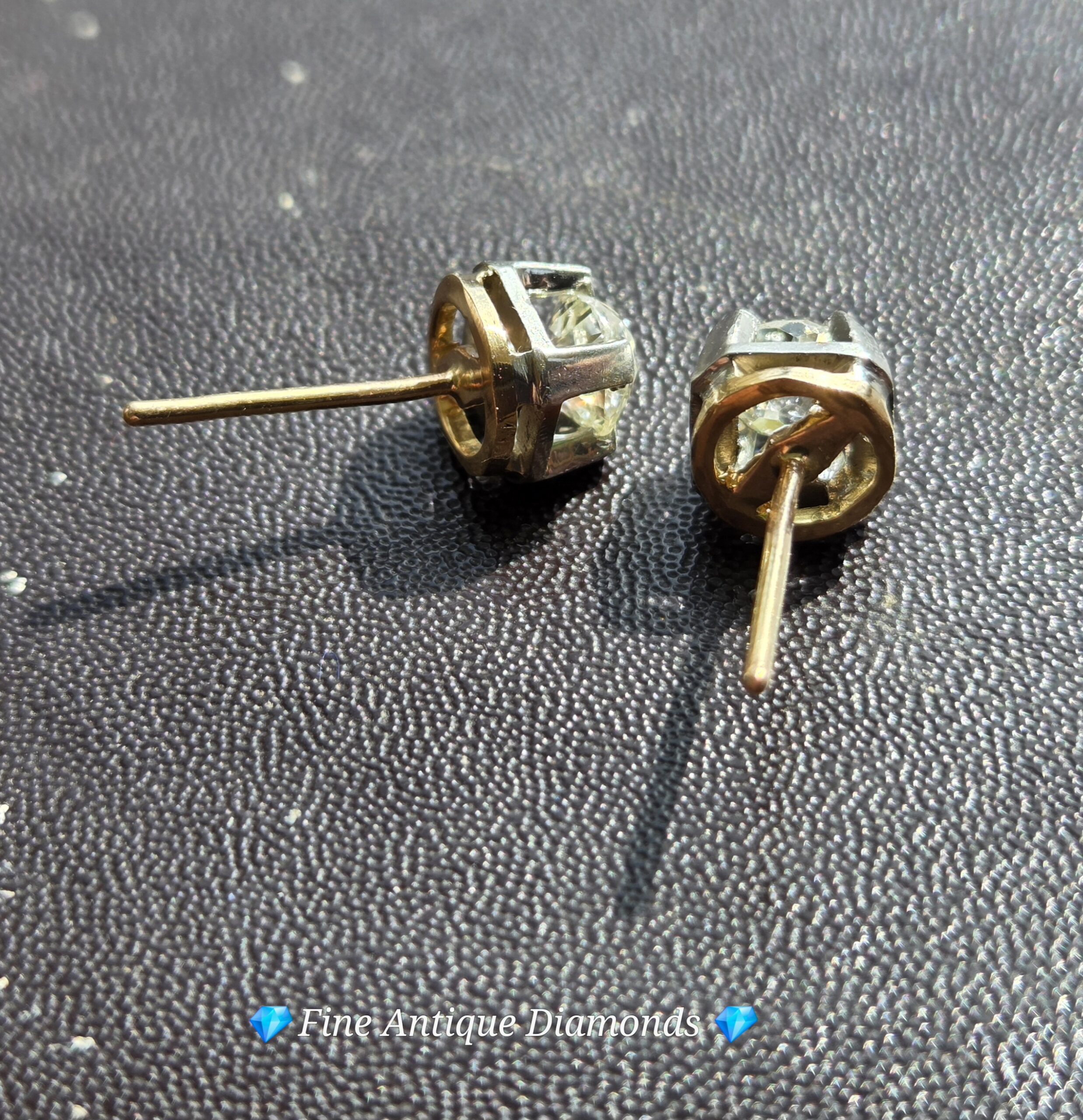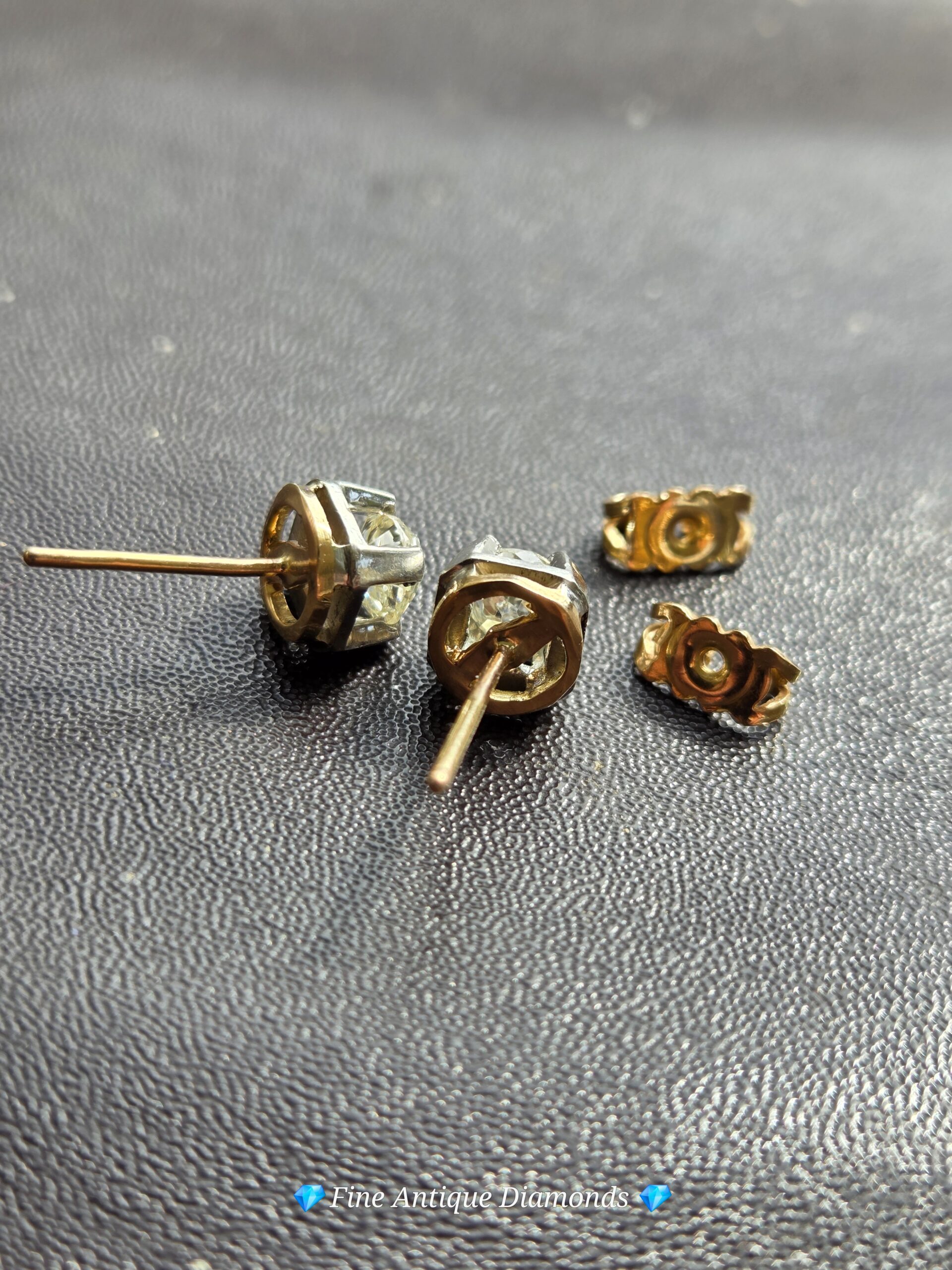 18ct white and yellow gold studs with butterfly backs. Hallmarked.