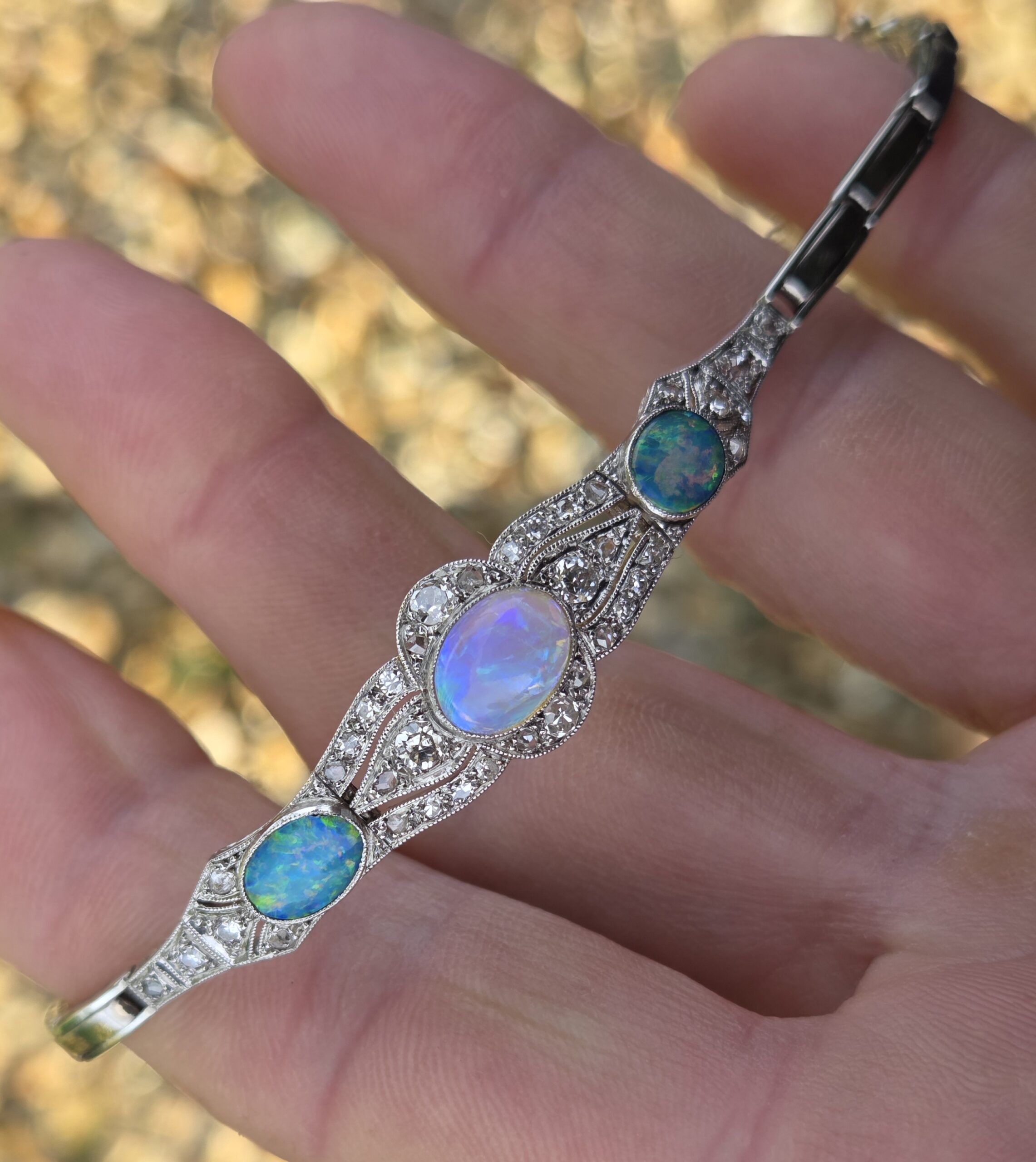 A Wonderful Antique Opal and Diamond bracelet dating from late Edwardian, early 1920s.