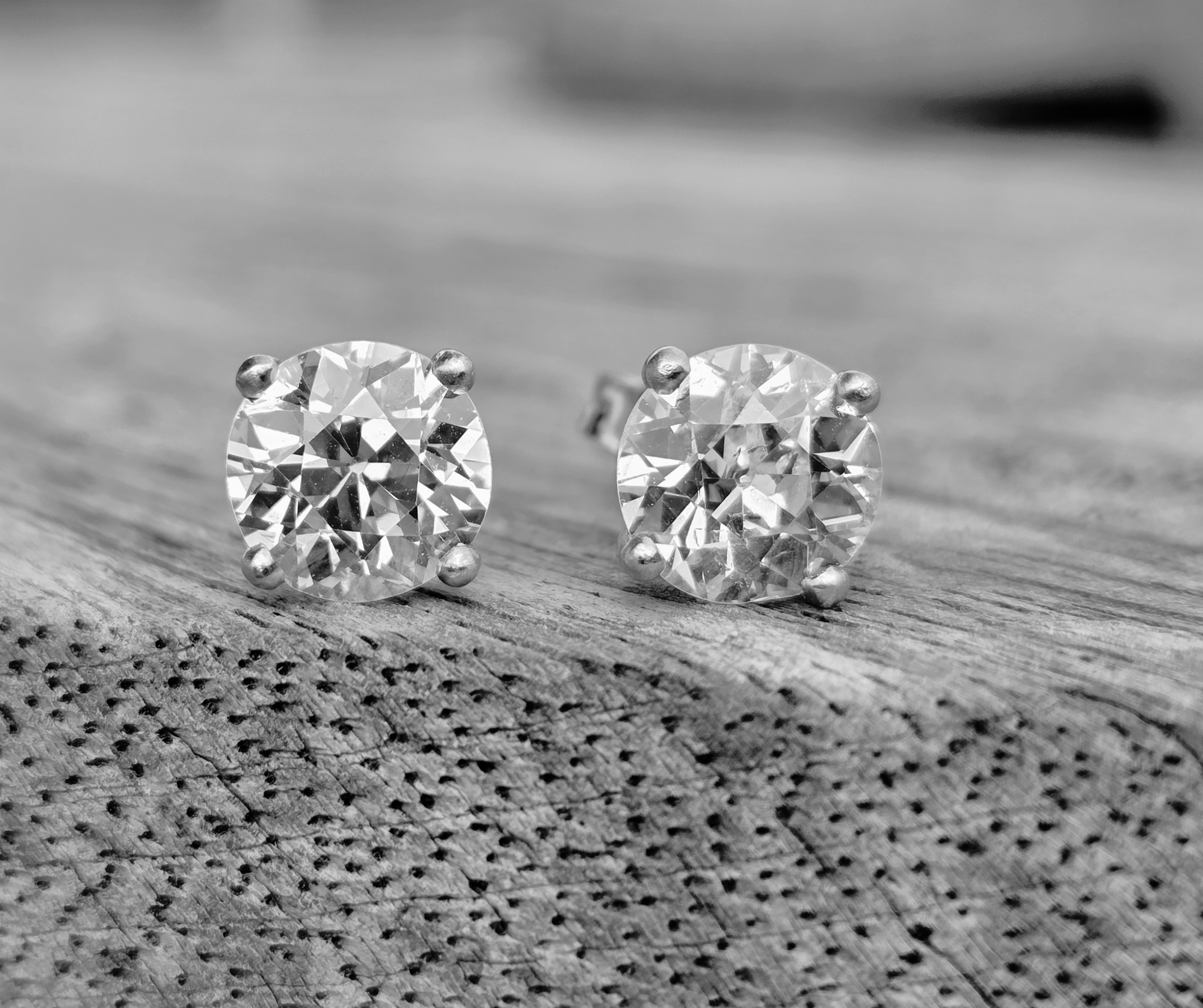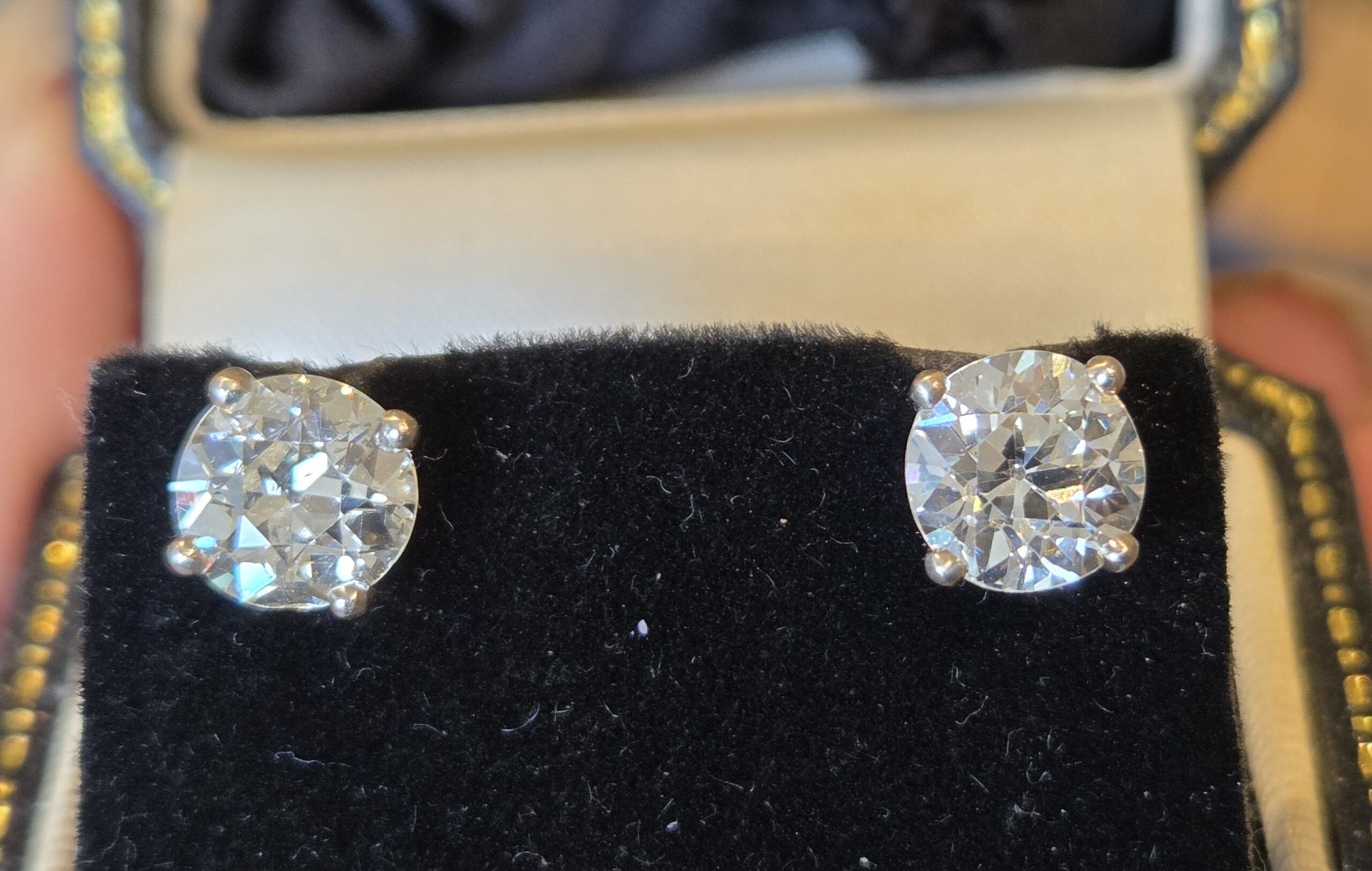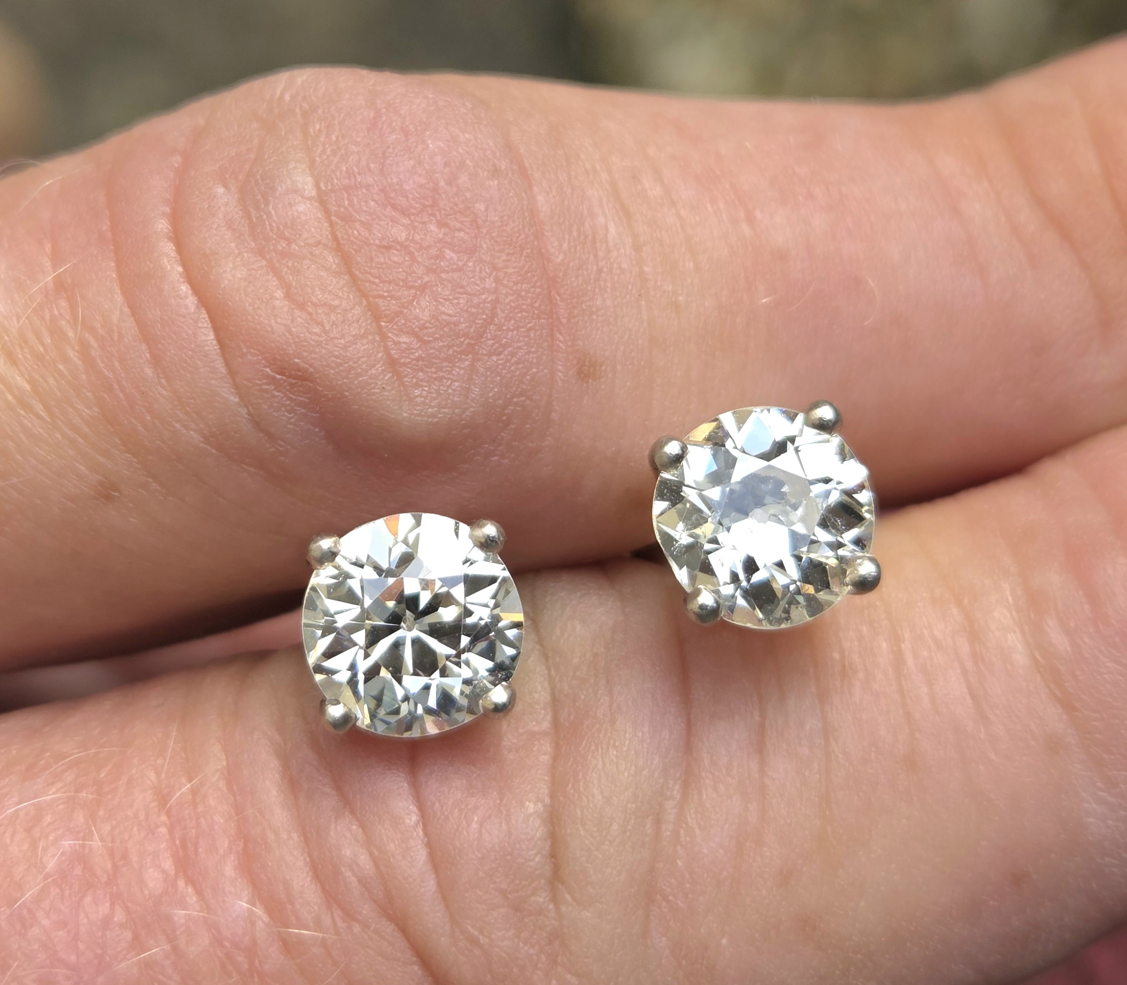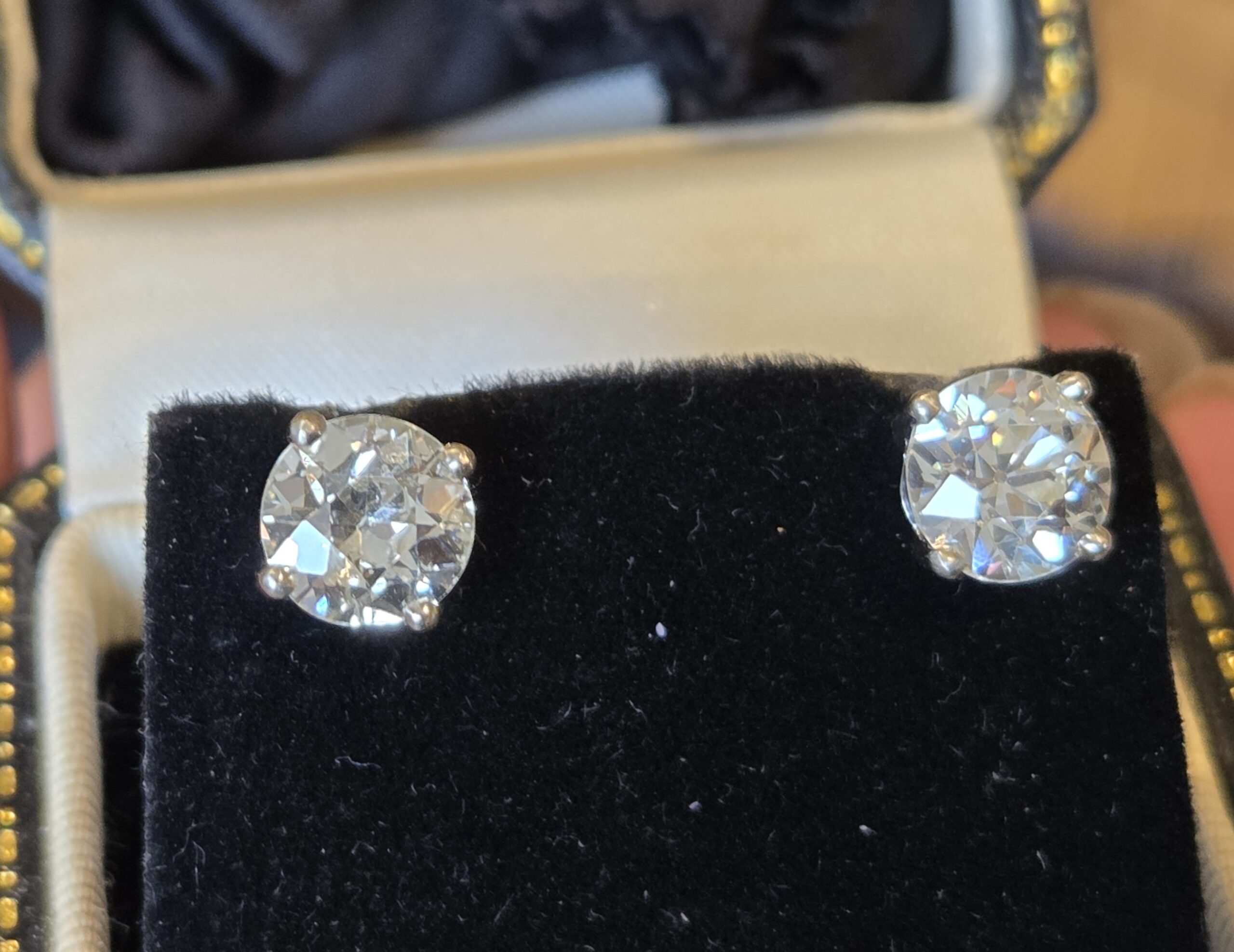 An incredibly rare pair of Old European cut diamonds. So well matched at 7 4mm each. 1.60ct each.