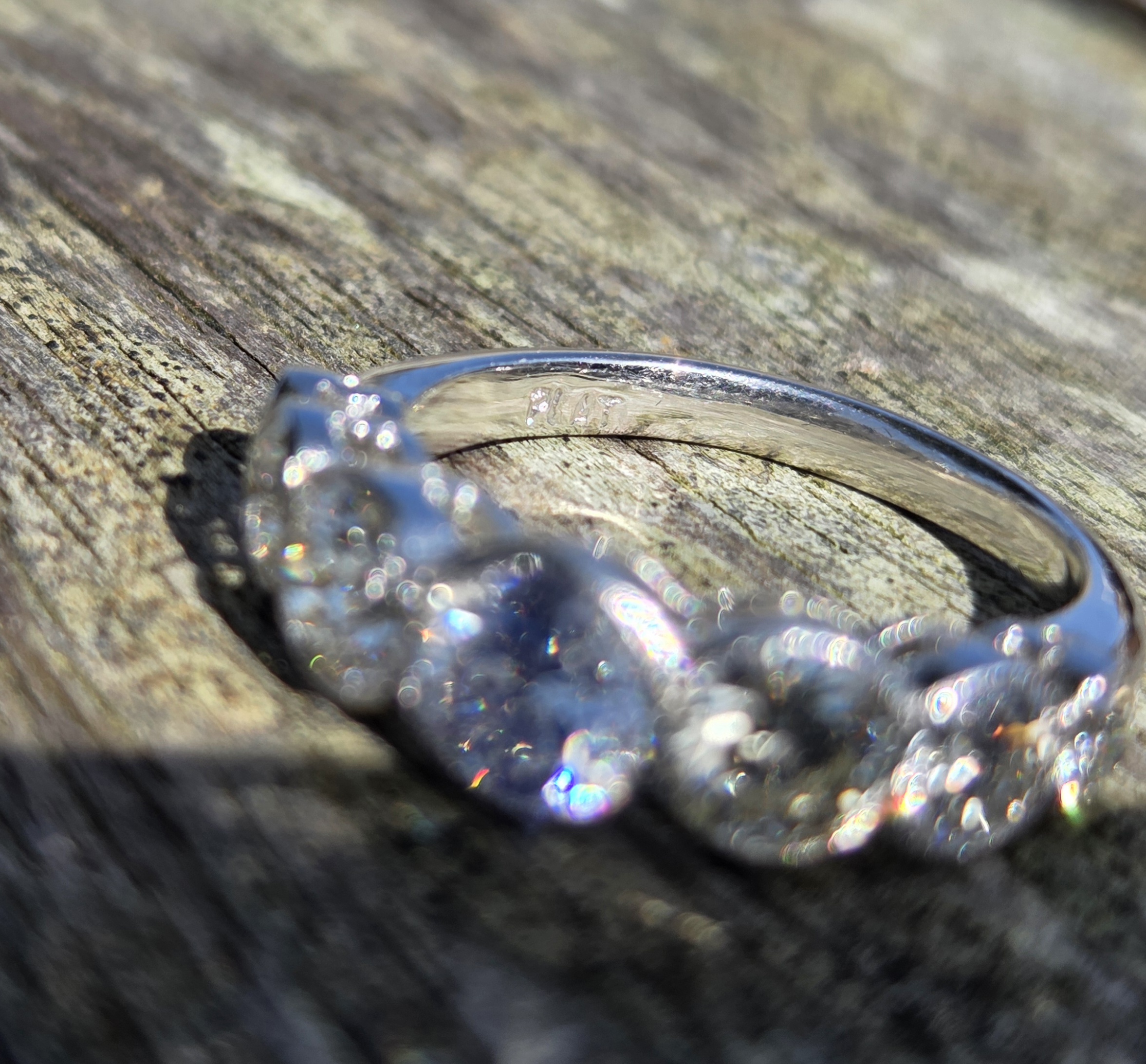 Super eyeclean but a couple of diamonds are very slightly differing in colour making this a very affordable purchase for diamonds of this size and clarity.