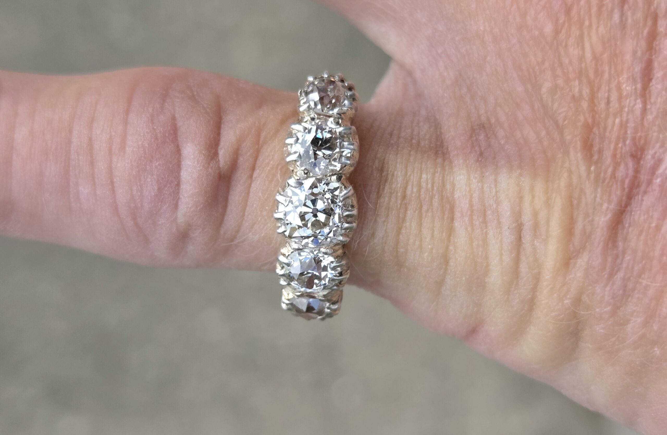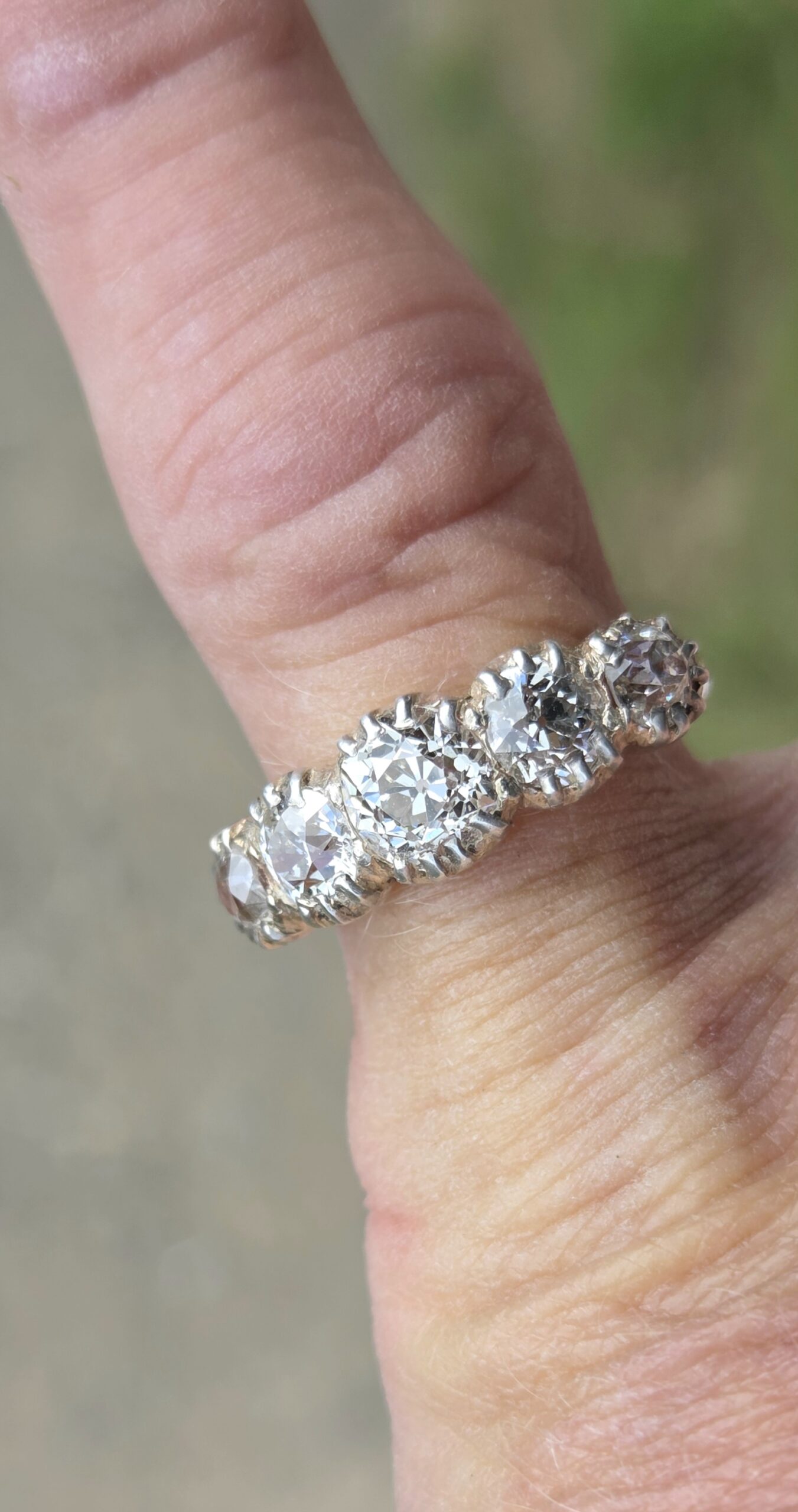 An incredibly rare Georgian Old Cut Diamond 5 stone ring featuring exceptional Old Mine cut diamonds totalling an estimated 2.70ct.