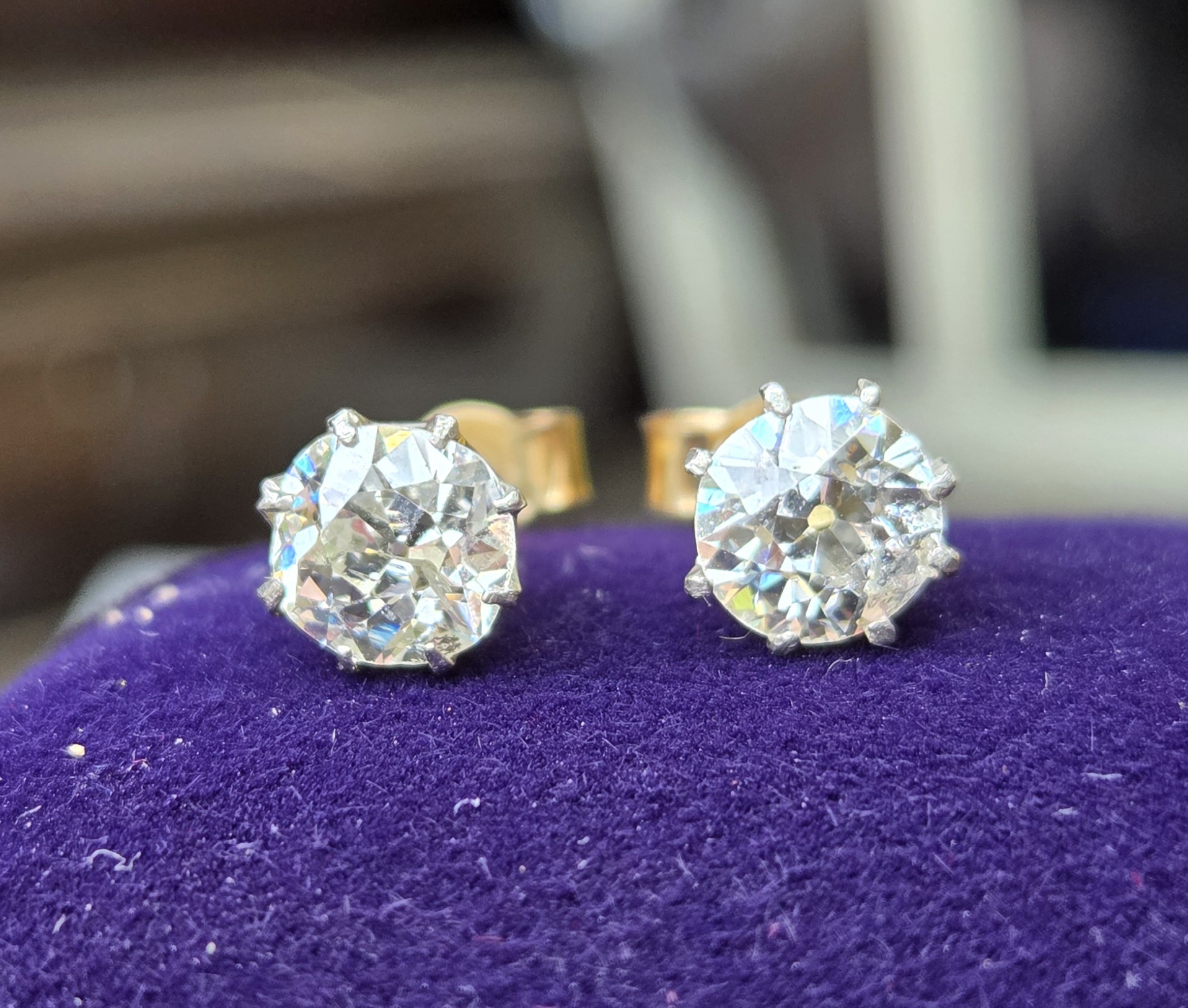 Original Old Cut Diamond stud earrings. Sold boxed.