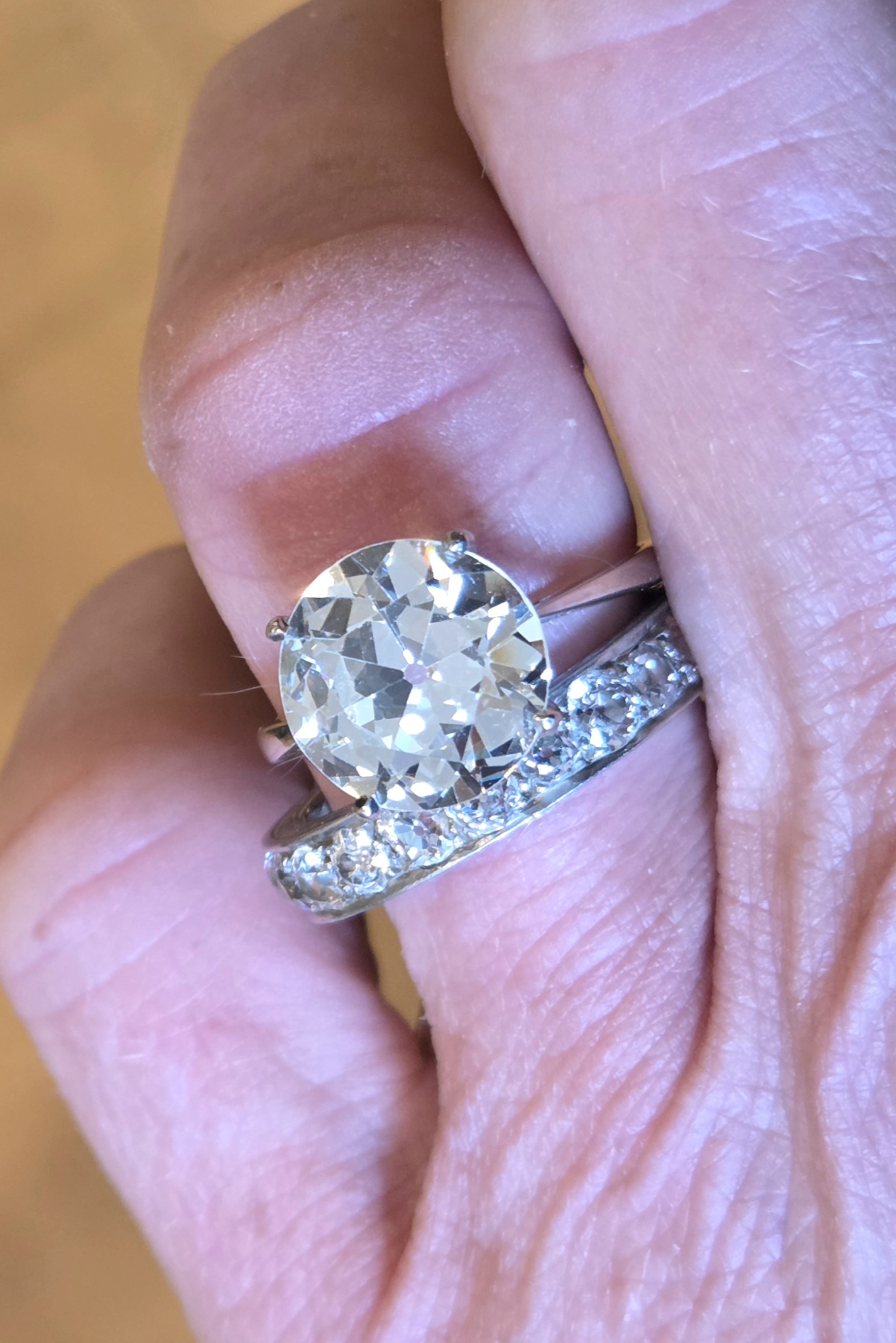 Known weight of 4.64ct. Cut C.1910. Hand cut, individual and nobody else will have one identical to this! That’s the beauty of old cuts!!