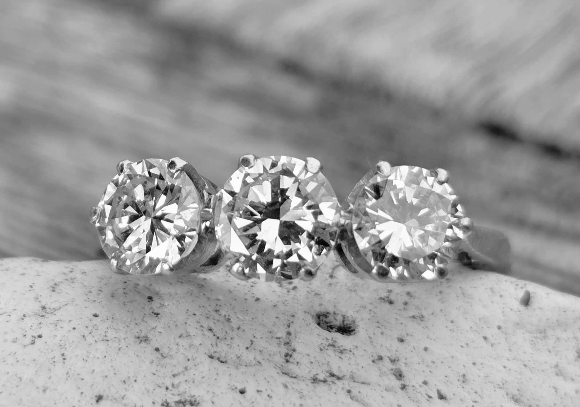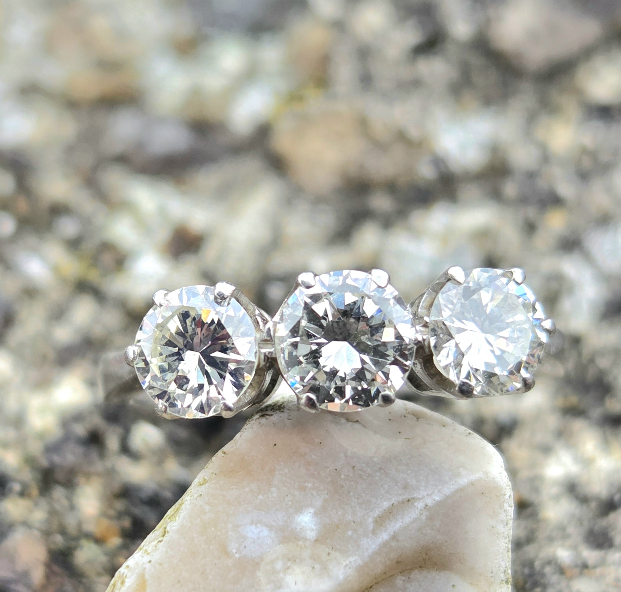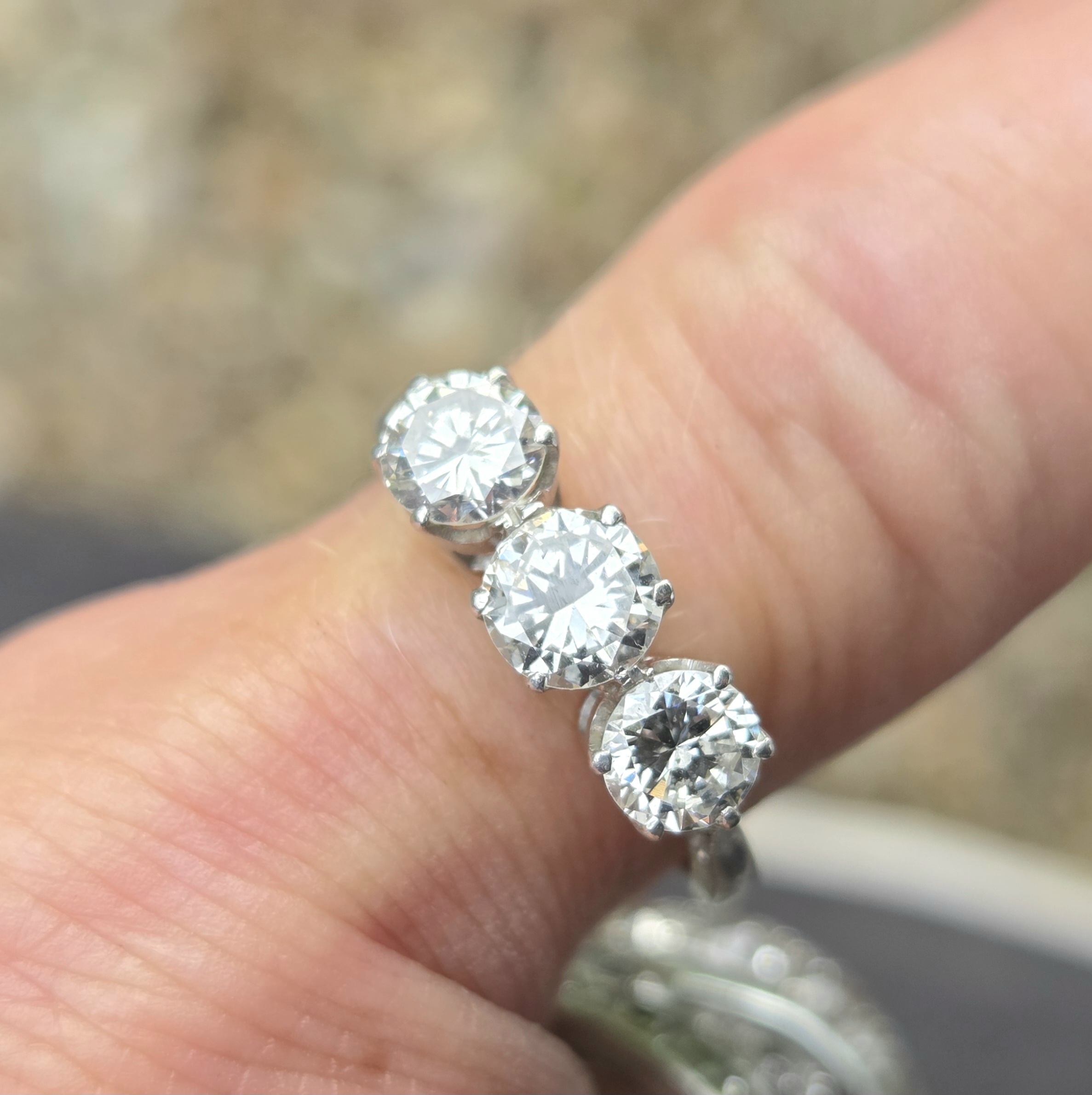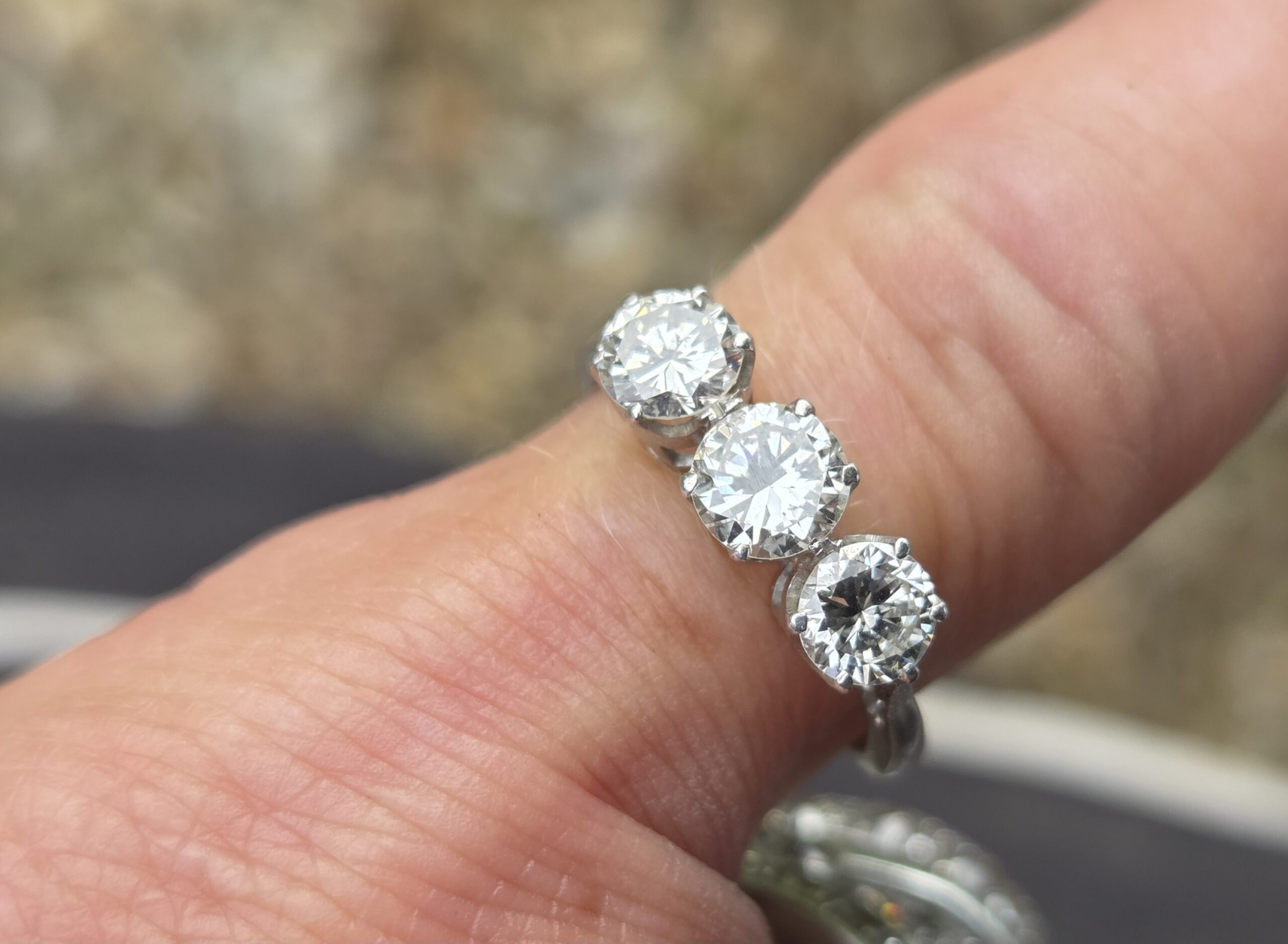 1920/30s Old cut diamond ring with 3 extremely fine natural diamonds.