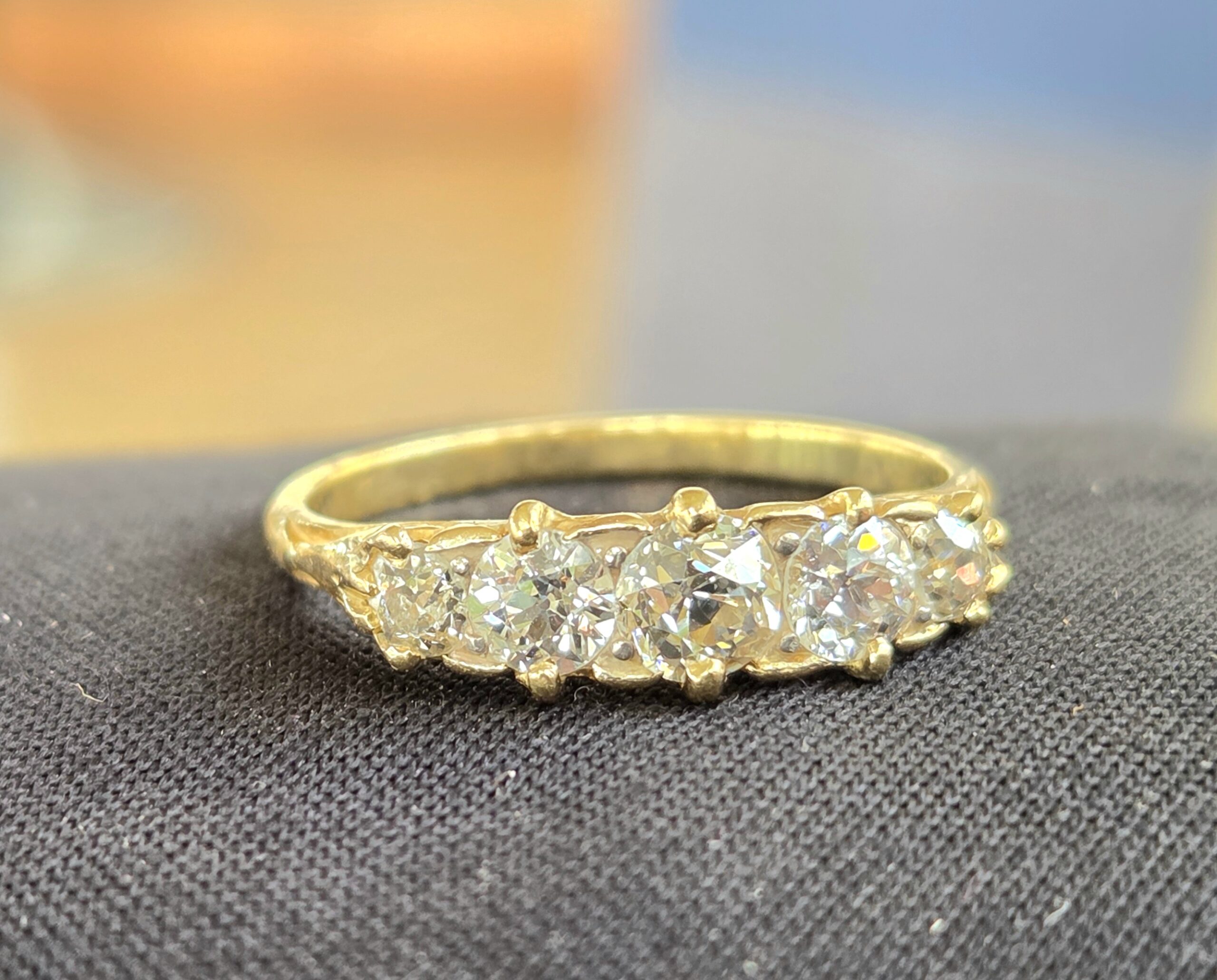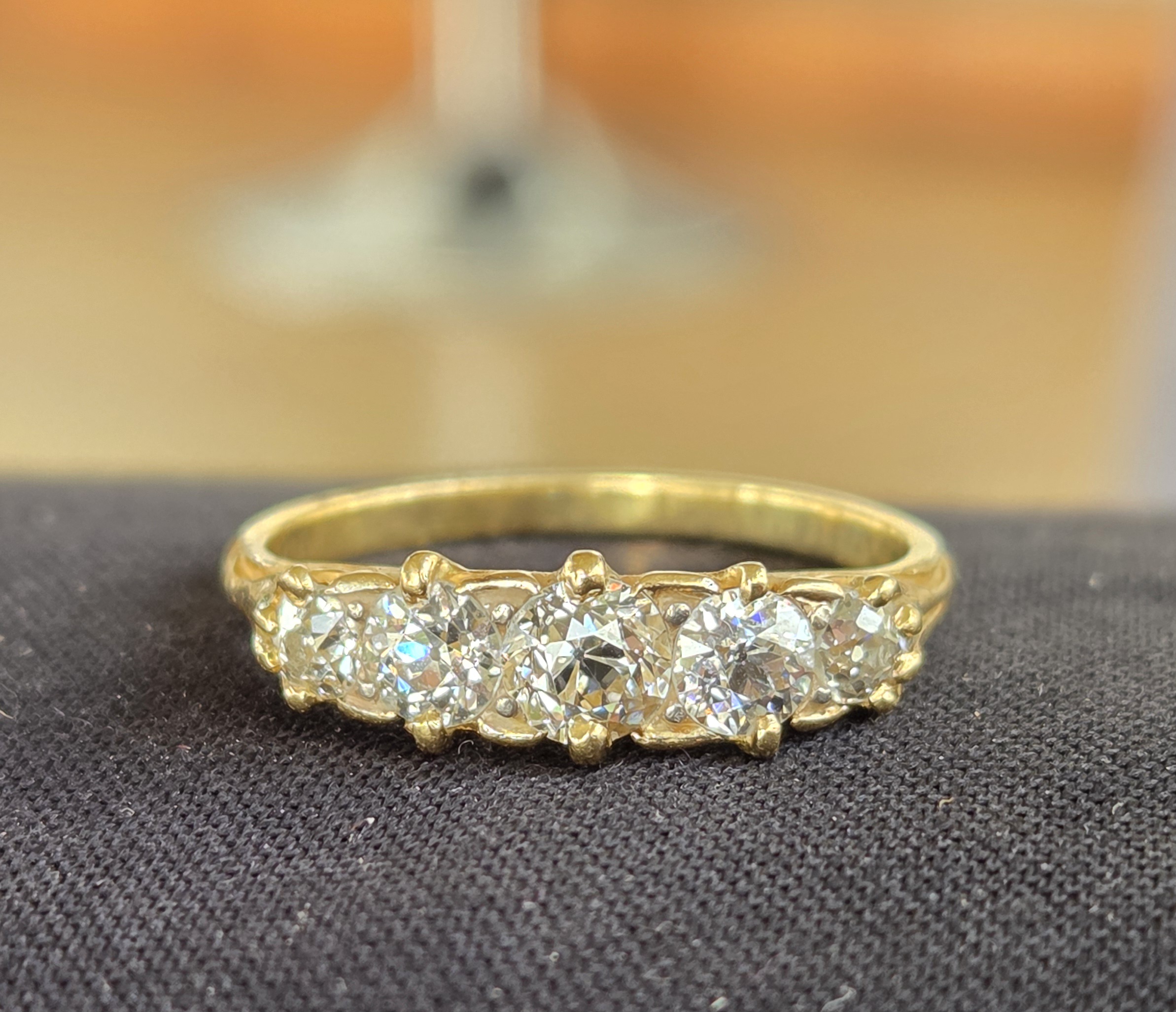 Simply top quality! Edwardian carved claw Old cut diamond 5 stone ring.