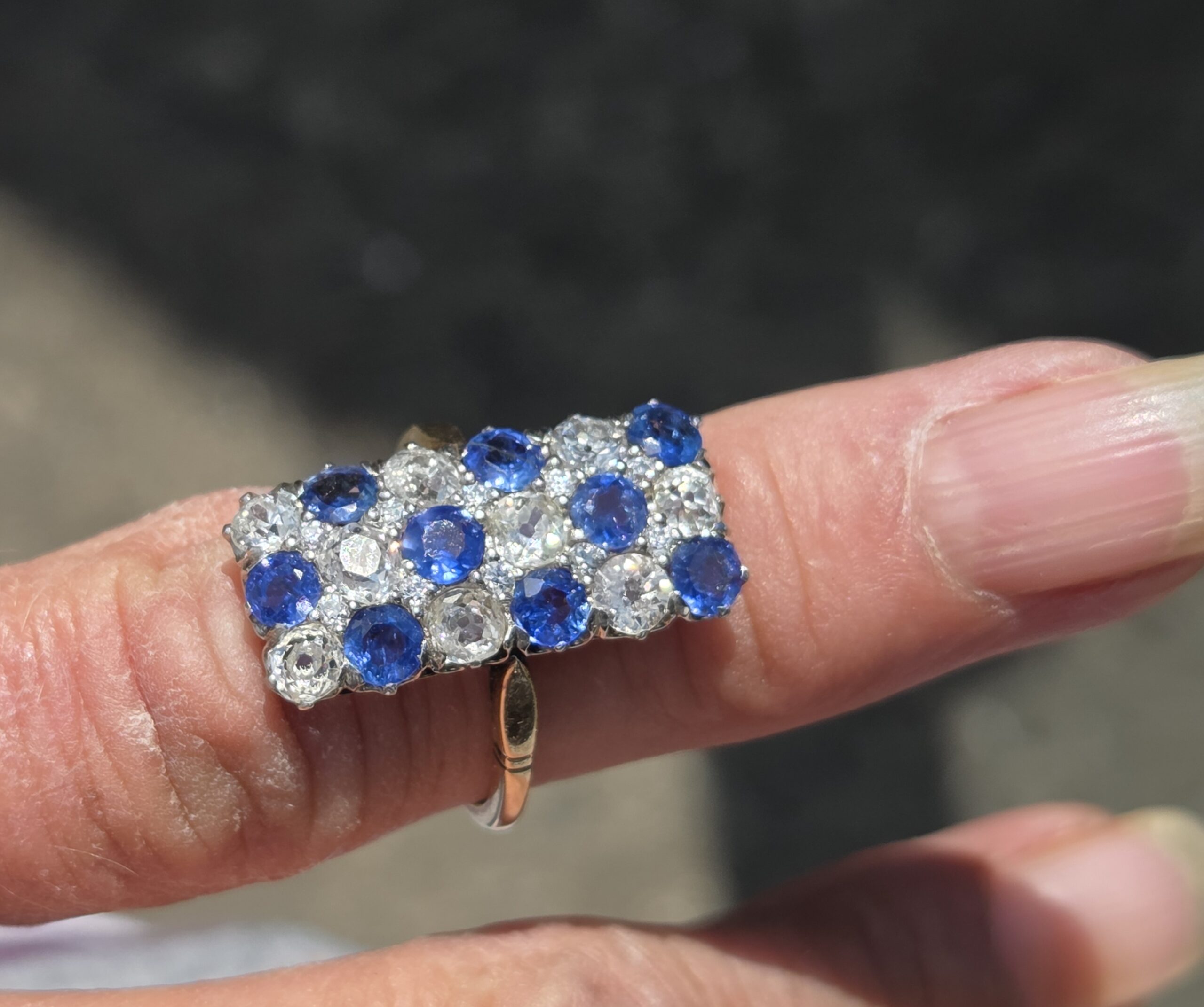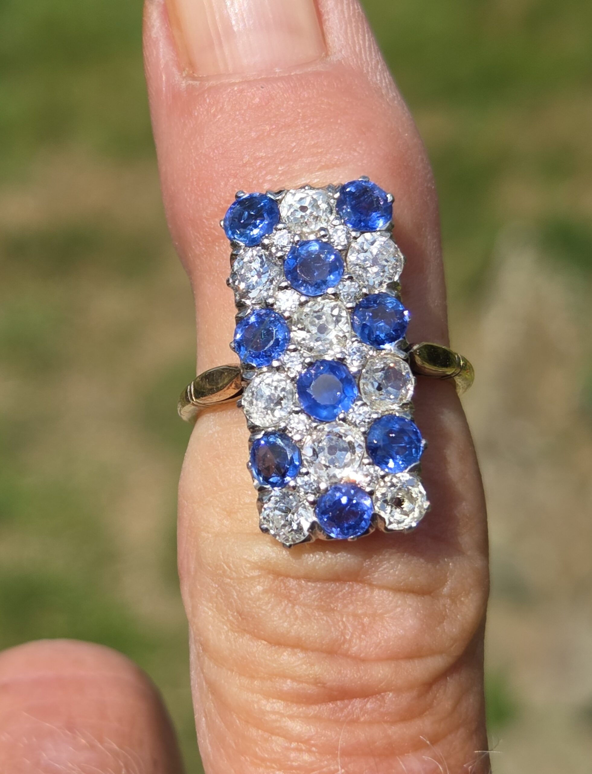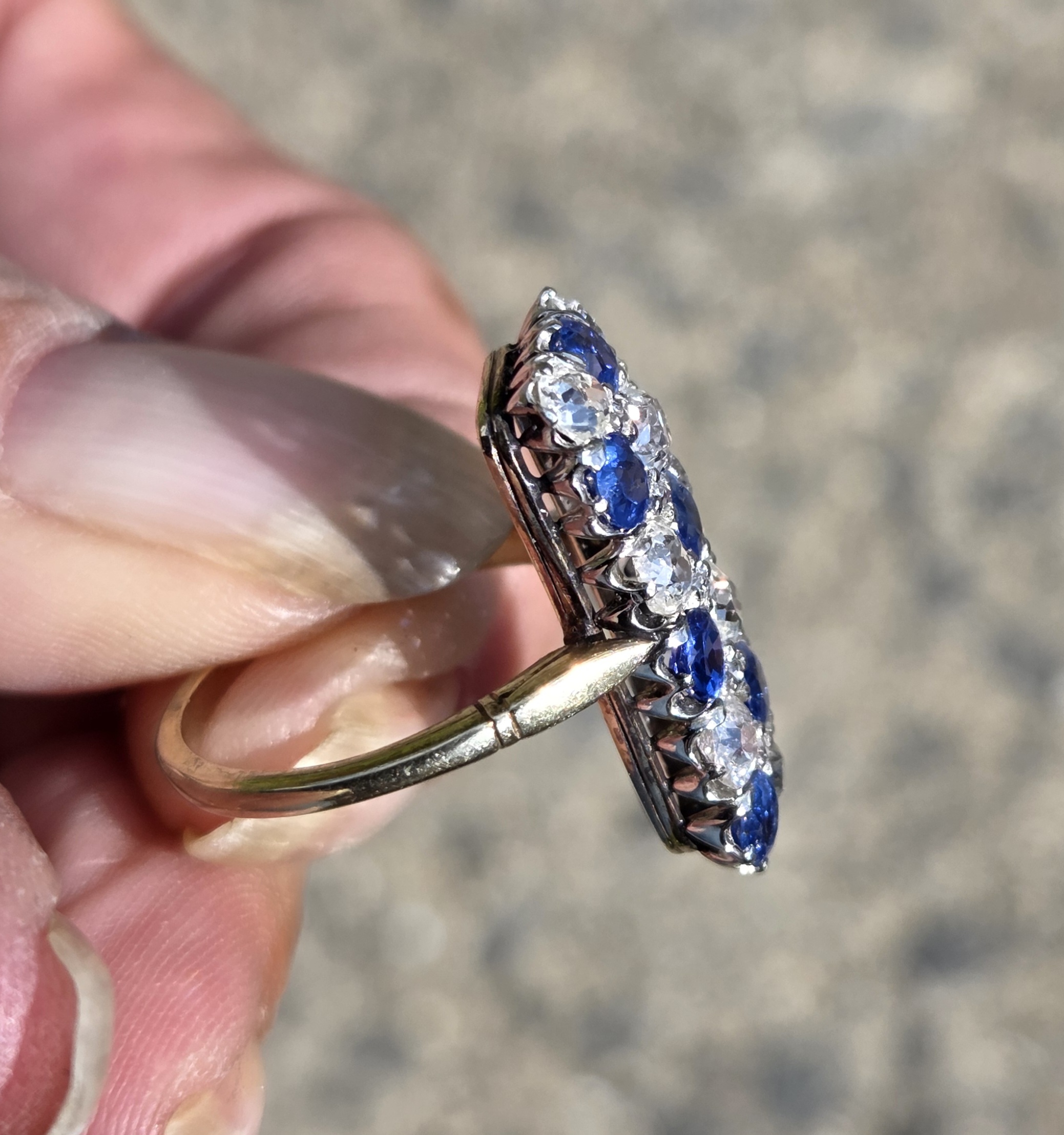 18ct & platinum. 22mm x 11mm. Size N, resizable.